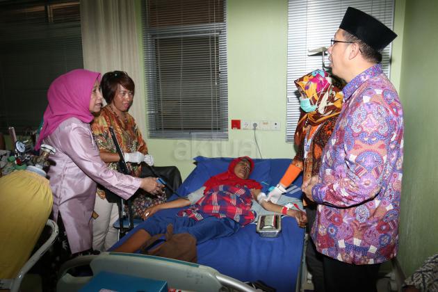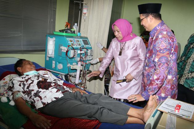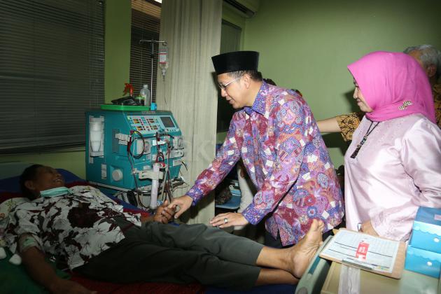 Ketua Yayasan Kesejahteraan Muslimat NU (YKMNU) Farida Slahudin Wahid mendampingi Menteri Agama Lukman Hakim Saifuddin, melihat pasien yang melakukan cuci darah di Klinik Hemodialisis Cipta Husada, Jakarta, Minggu (10/1/2016). Klinik Cipta Husada berhasil melakukan lebih dari 70.000 tindakan cuci darah dengan 23 mesin cuci darah merek Gambro, jumlah tindakan rata rata 1200 kali perbulan dan Pasien tersebut gratis melakukan cuci darah bekerja sama dengan BPJS. AKTUAL/JUNAIDI MAHBUB