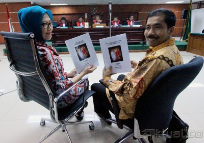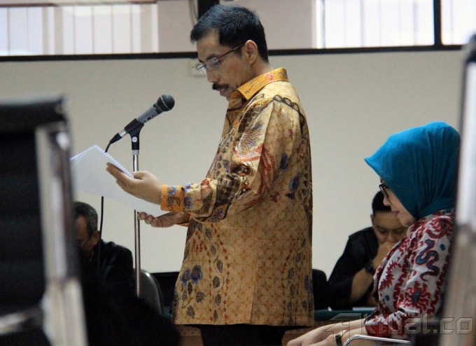 Wali Kota Palembang nonaktif, Romi Herton saat membacakan Pledoinya di Pengadilan Tindak Pidana Korupsi (TIPIKOR), Jalan HR Rasuna Said, Jakarta Selatan, Senin (23/2/2015). Romi memberi judul pledoinya ‘Saya Pemenang Pilkada yang Terzalimi, Saya adalah Korban kejahatan’ Romi Herton terdakwa kasus suap kepada Akil Mochtar. AKTUAL/MUNZIR