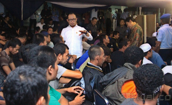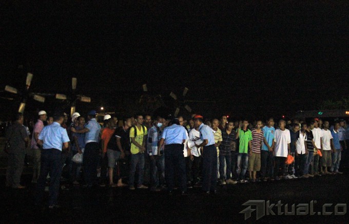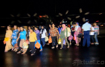 479 orang Tenaga Kerja Indonesia (TKI) bermasalah dari Malaysia tiba di Lanud Halim Perdanakusumah, Jakarta, Selasa (23/12/2014). Pemerintah memulangkan sebanyak 1197 TKI ilegal dari Malaysia menggunakan lima pesawat Hercules milik TNI AU. AKTUAL/MUNZIR