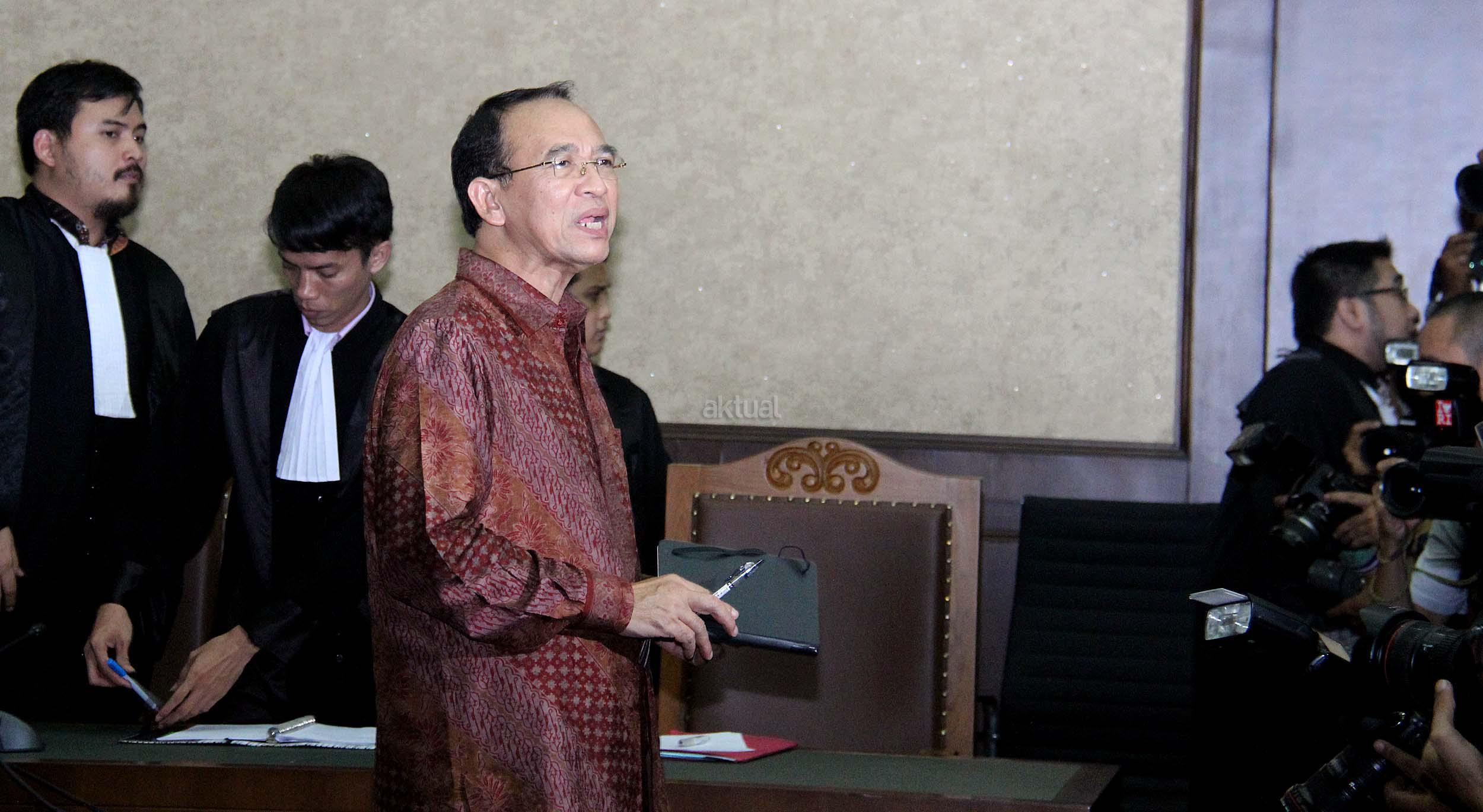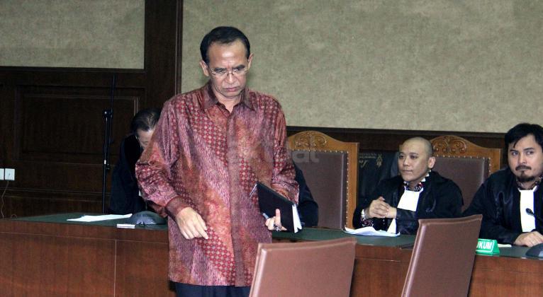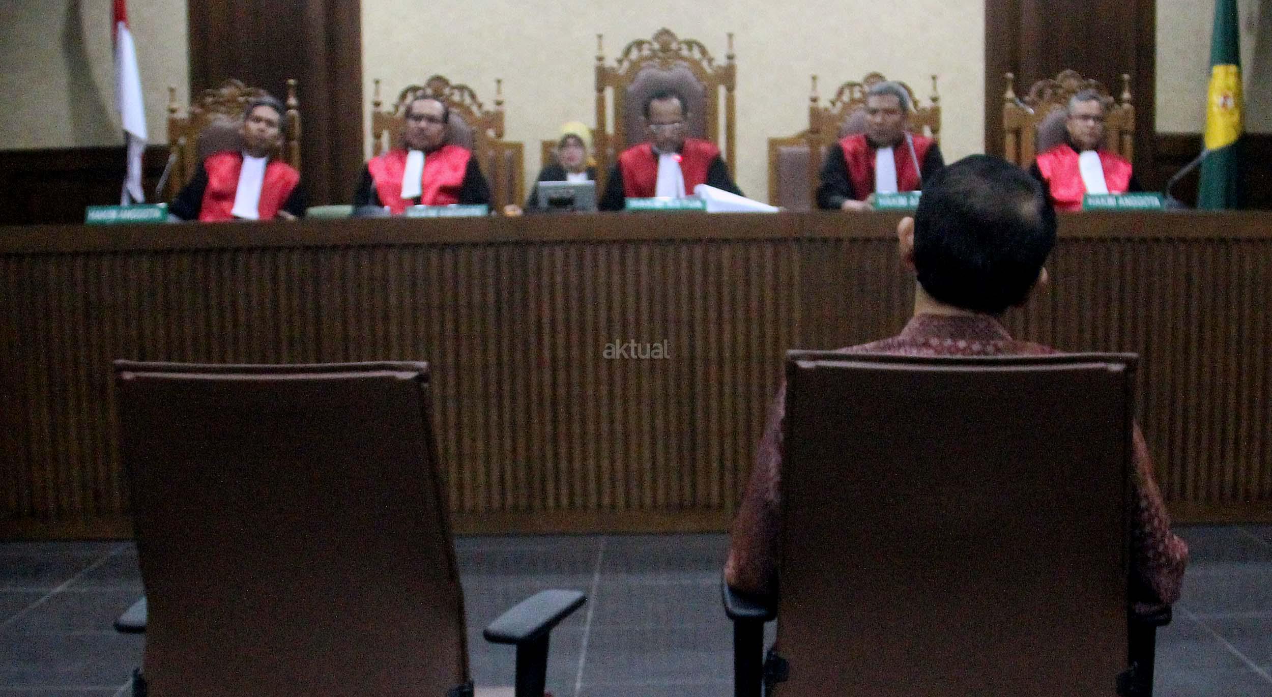 Mantan Menteri Agama Suryadharma Ali saat menjalani sidang vonis di Pengadilan Tipikor, Jakarta, Senin (11/1/2016). Dalam putusan Majelis Hakim Pengadilan Tipikor memvonis Suryadharma Ali enam tahun penjara denda tiga ratus juta rupiah subsider tiga bulan dan pindana tambahan uang pengganti 1,821 miliar subsider dua tahun penjara.