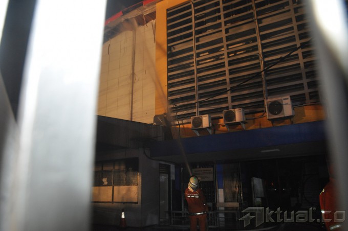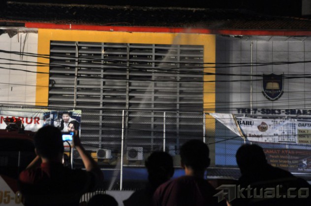 Petugas Pemadam Kebakaran berhasil memadamkan api pada peristiwa kebakaran di Gedung SMK Penabur, Jalan Gunung Sahari, Jakarta, Sabtu (9/8/2014). Sebanyak 20 unit mobil pemadam dikerahkan, kebakaran diduga akibat arus pendek listrik, beruntung tidak ada koran pada peristiwa tersebut. Aktual/Junaidi Mahbub