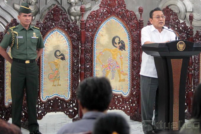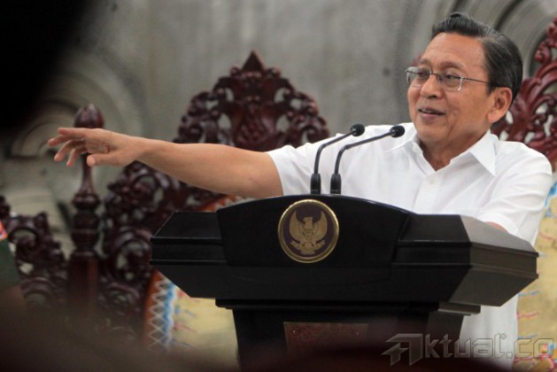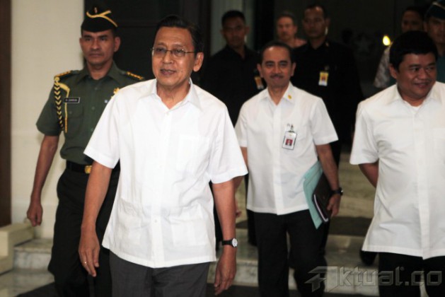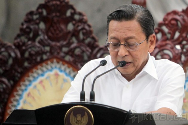 Wakil Presiden Indonesia, Boediono memberi keterangan pers di kantor Wakil Presiden, Sabtu (23/11/2013). Penjelasan Boediono itu terkait pemeriksaan Komisi Pemberantasan Korupsi (KPK) atas dirinya terkait Kasus Bailout Bank Century. Boediono menyatakan saat itu selaku Gubernur Bank Indonesia, ia dan pihak terkait telah mengambil langkah tepat. Aktual/Tino Oktaviano