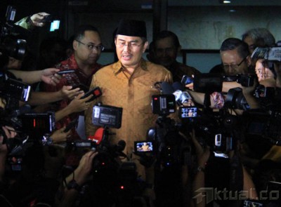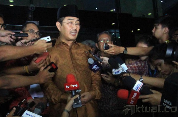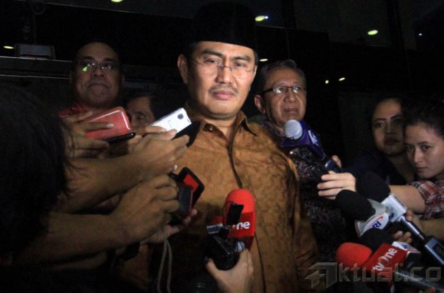 Wakil ketua Tim Independen (Tim 9) Jimly Asshiddiqie memberi keterangan kepada wartawan usai bertemu dengan pimpinan Komisi Pemberantasan Korupsi (KPK) di Gedung KPK, Jakarta, Selasa (3/2/2015) malam. Kedatangan tim yang dibentuk Presiden Joko Widodo tersebut untuk memberi masukan terhadap pimpinan KPK terkait konflik yang terjadi antara lembaga antikorupsi itu dengan Polri.