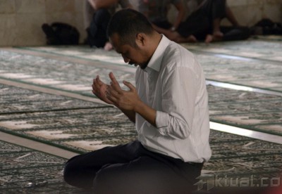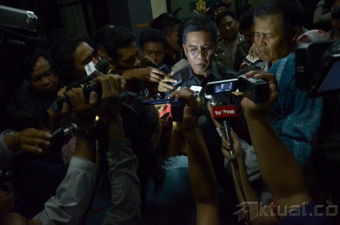 Ketua Komisi Pemberantasan Korupsi nonaktif, Abraham Samad berdoa sebelum menjalani pemeriksaan di Direktorat Reserse Kriminal Umum (Dit Reskrimum) Polda Sulselbar, Makassar,Sulawesi Selatan, Selasa (28/4). Setelah menjalani pemeriksaan selama 6 jam dengan 41 pertanyaan, Abraham Samad resmi ditahan di Polda Sulselbar terkait kasus dugaan pemalsuan dokumen. ANTARA FOTO/Dewi Fajriani