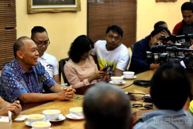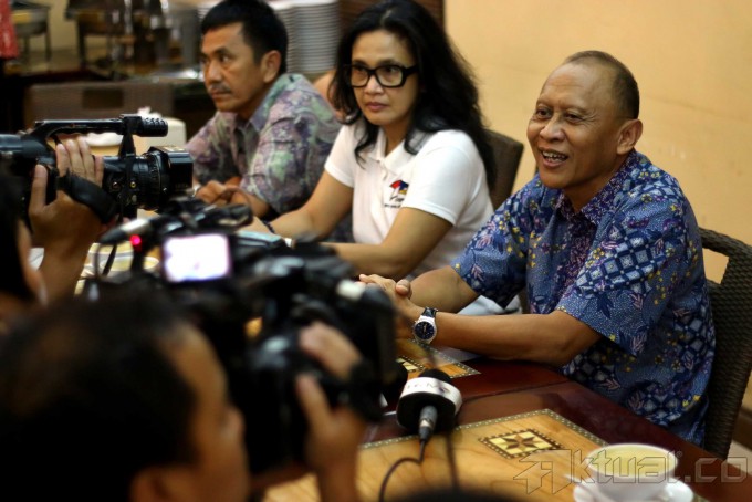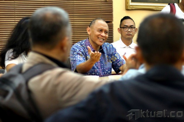 Anggota Dewan Pembina Parta Demokrat Pramono Edhie Wibowo saat diwawancarai sebelum buka puasa bersama di Jakarta, Jumat, (4/7/2014). Dalam kesempatan tersebut Pramono Edhie mengatakan bahwa dukungan mesin partai demokrat hanya mendukung capres-cawapres Prabowo-Hatta dalam Pilpres 2014 ini. Aktual/Tino Oktaviano