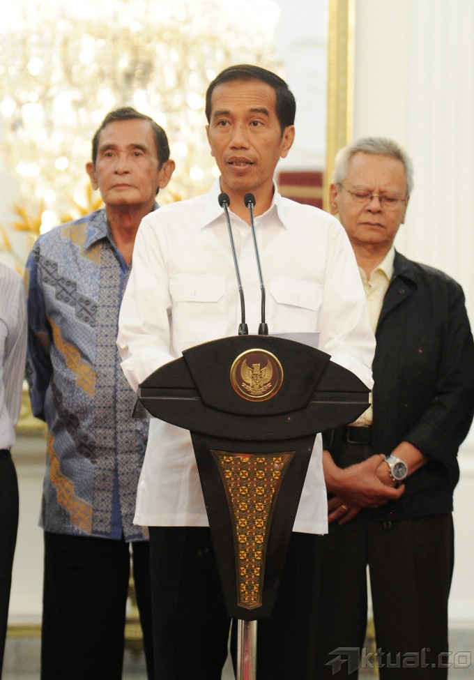 Presiden Joko Widodo memberikan kterangan pers di Istana Merdeka, Minggu (25/1/2015). Presiden Joko Widodo meminta KPK dan Polri untuk membuat terang benderang perkara hukum yang menimpa masing-masing personel mereka. ANTARA FOTO/SEPTRES