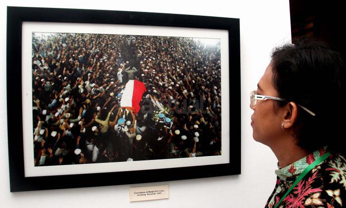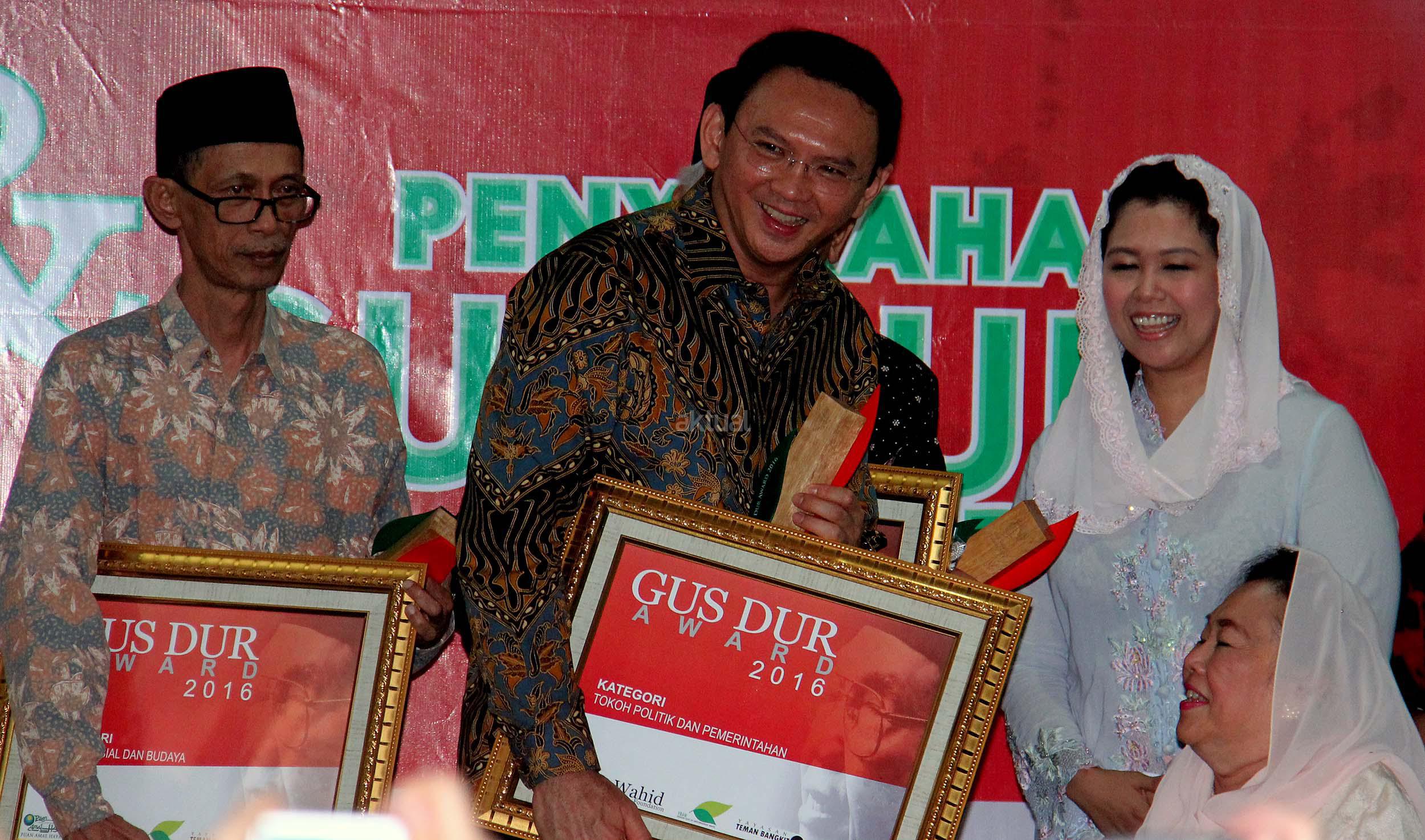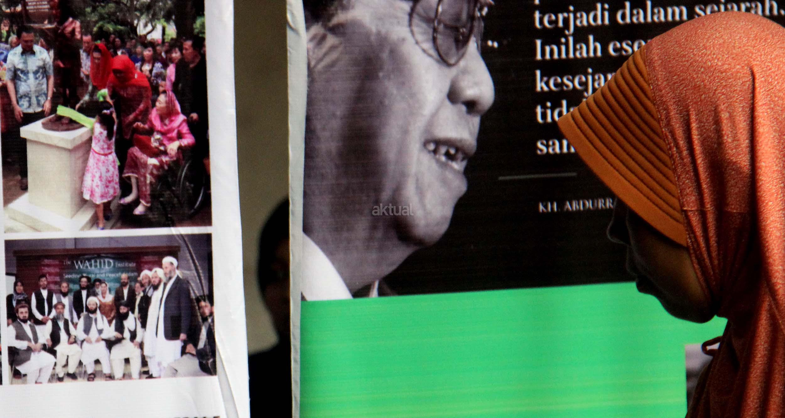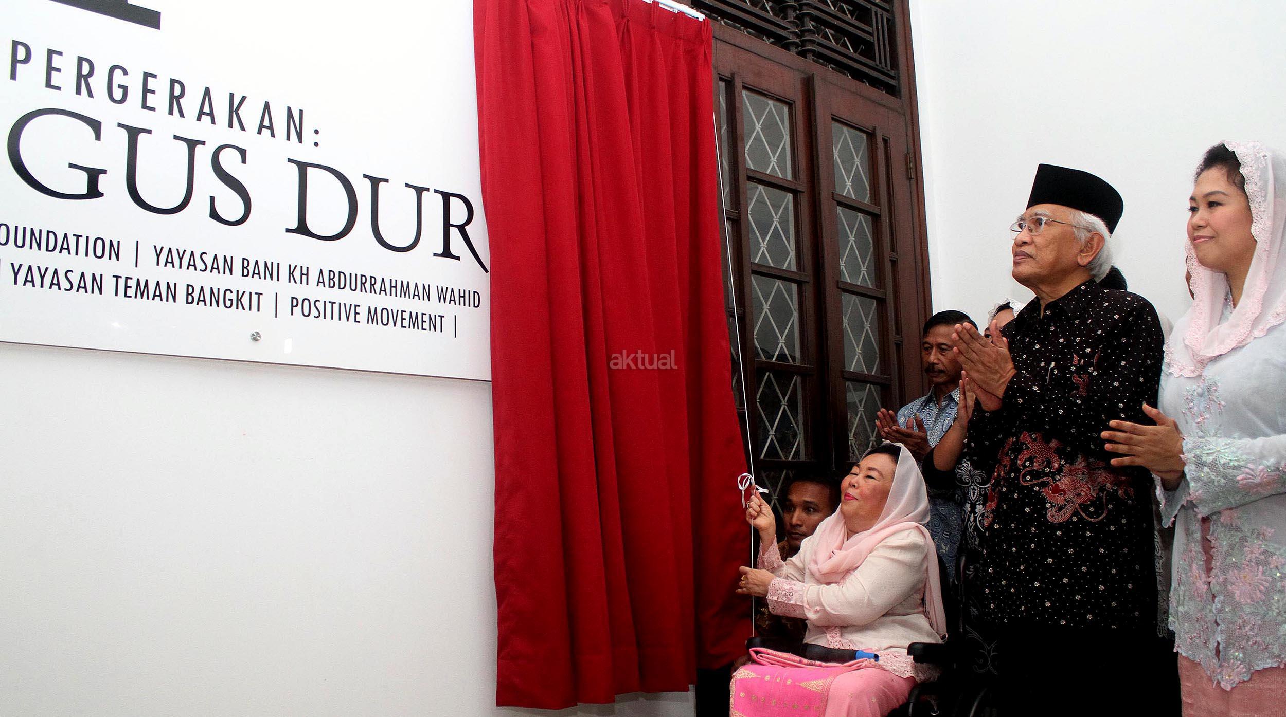 Kiri-kanan ; Isteri Gus Dur Sinta Nuriyah, KH. Mustofa Bisri (Gus Mus) dan anak Gus Dur Yeny Wahid, meresmikan rumah pergerakan Griya Gus Dur di Jalan Taman Amir Hamzah, Menteng, Jakarta Pusat, Minggu (24/1/2016). Rumah pergerakan griya Gus Dur sebagai tempat perjuangan untuk mewujudkan kemaslahatan umat. "Rumah ini mempunyai sejarah amat penting dalam perjuangan bangsa. Rumah ini menjadi gagasan dan peristiwa penting sejarah bangsa. Nyai Solichah Wahid Hasyim melanjutkan perjuangan ini dengan menjadikan rumah ini sebagai rumah para aktivis kebangsaan.