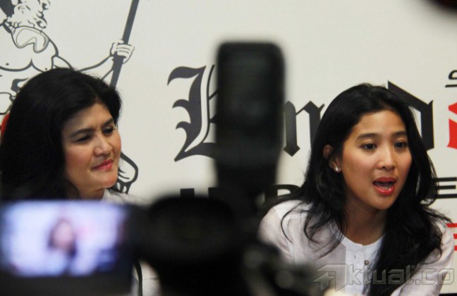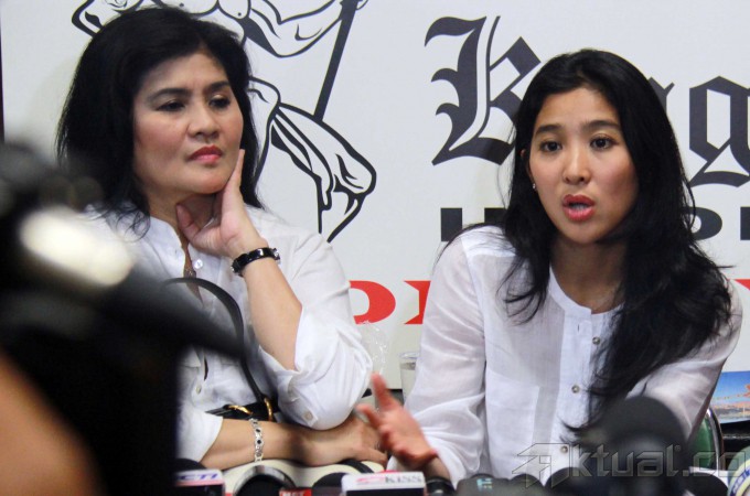 Artis Olivia Zalianty didampingi Ibunya Tetty Liz Indriati memberikan keterangan seputar beredarnya video pelesiran bersama Ketua Umum Partai Golkar Aburizal Bakrie dan politikus Golkar, Azis Syamsuddin di Jakarta, Minggu (23/3/2014) malam. Diakui Olivia, dirinya memang memiliki kedekatan dengan ARB. Aktual/Tino Oktaviano