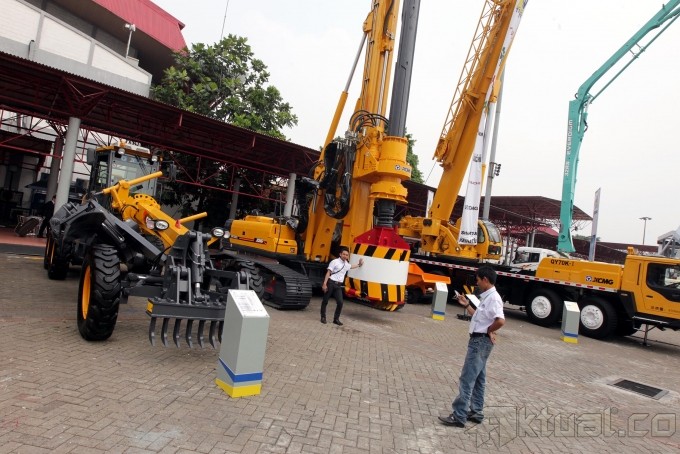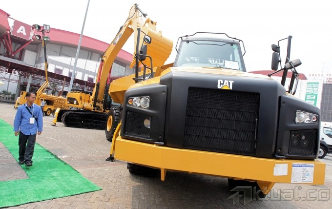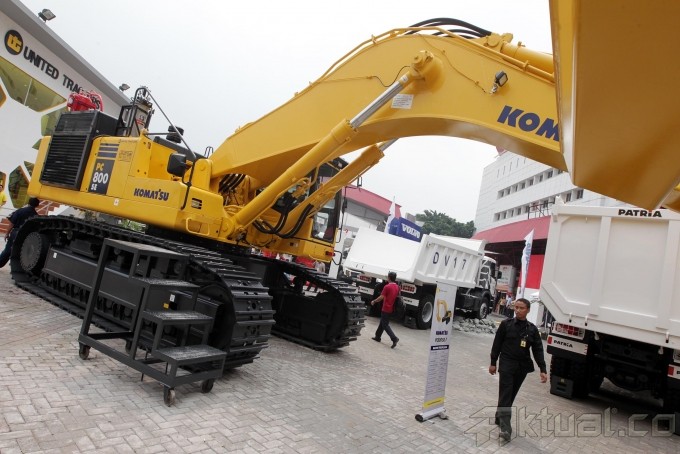 Seorang pengunjung mengamati kendaraan alat berat saat pameran “Energy & Mining Indonesia Series” di Jakarta, Rabu (4/9). Pameran Indonesia Mining 2013 menampilkan sejumlah produsen dan distributor alat-alat berat dari Asia dan Eropa dan akan berlangsung hingga 7 Sepetember 2013 mendatang. Aktual/Tino Oktaviano
