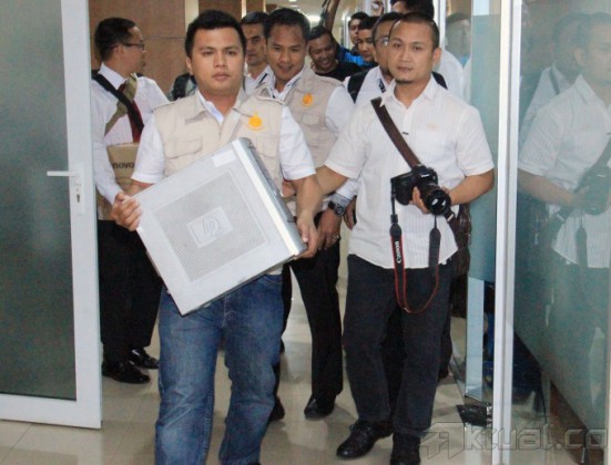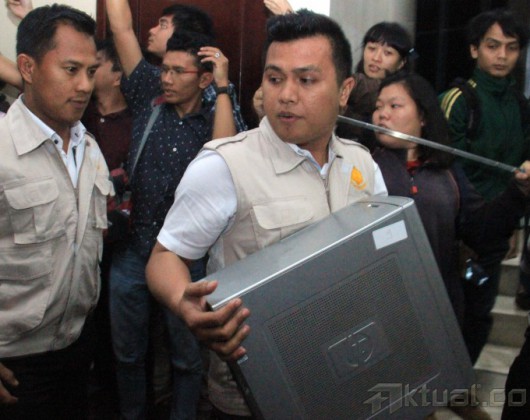Anggota Bareskrim Mabes Polri melakukan penggeledahan di ruangan Komisi E DPRD DKI Jakarta, Senin (27/4). Bareskrim Mabes Polri selain menggeledah ruangan tersebut juga menggeledah ruang kerja Wakil Ketua DPRD DKI Jakarta Abraham Lunggana terkait perkara dugaan korupsi UPS (Uninterruptable Power Supply). AKTUAL/MUNZIR