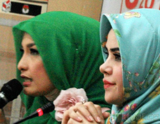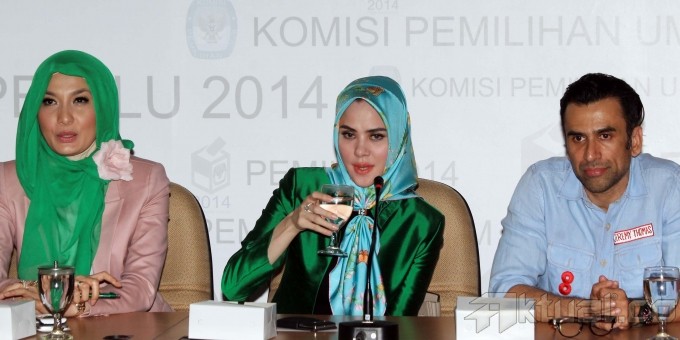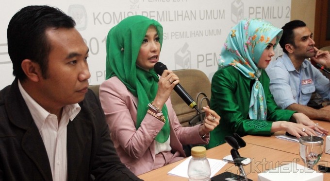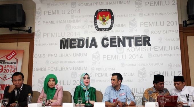 Dari kiri Komisioner KPU Sigit Pamungkas, Caleg PKB Arzeti Bilbina, Caleg PPP Angel Lelga, Caleg PAN Jeremy Thomas, Pengamat Politik Ray Rangkuti dan Caleg Partai Golkar Charles Bonar saat menjadi pembicara dalam diskusi pemilu menuju 2014 dengan tema “Publik Figur Dalam Belenggu Partai Politik (Parpol), Apa Yang Diperankan?” di gedung KPU Pusat, Jakarta Pusat, Rabu (4/9). Aktual/Tino Oktaviano