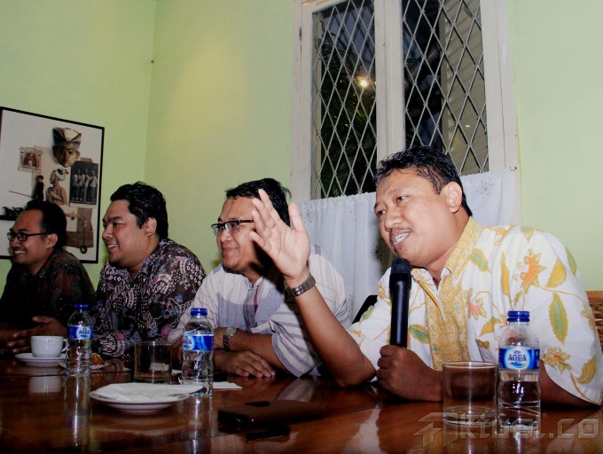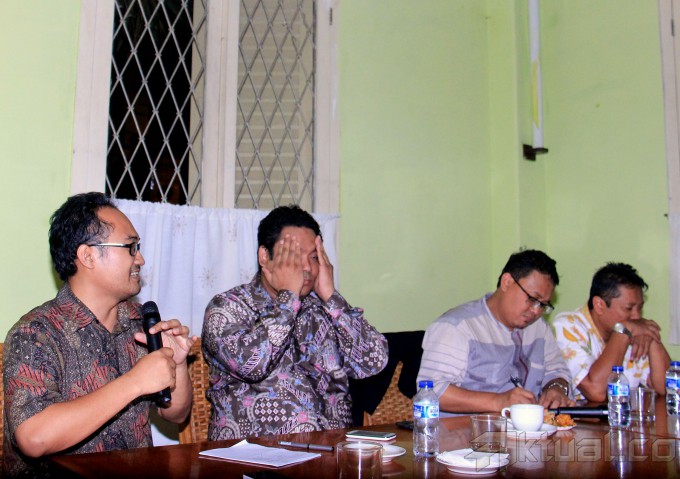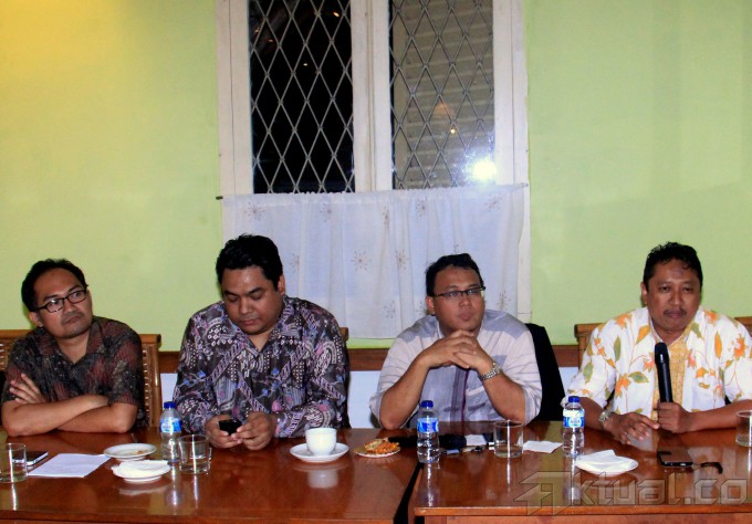 Dari kiri ke kanan, Ketua KM UGM 1997-1998 Haryo Setyoko, Koordinator Pendudukan DPR/MPR 1998/Ka BPM UI 1997 -1998/Jubur JAK UI Heru Cokro, SekJend BEM UI 1998-2000 Arie Wibowo dan Koord FKSMJ 98/Ka SM UNJ 1997-1998 Henri Basel, saat diskusi urun rembug aktivis lintas kampus dan generasi yang bertemakan ‘Menatap Masa Depan Demokrasi di Indonesia’ di Jalan Cikini Raya, Jakarta Pusat, Jumat (27/3/2015). Peserta diskusi yang di isi oleh para mantan aktivis 98 menyoroti Indonesia hari ini mirip dengan 98, instrumen pemerintahan mati suri, eksekutif-legislatif saling serang, parpol pecah belah, lembaga peradilan berkelahi dan saling sandera. AKTUAL/MUNZIR