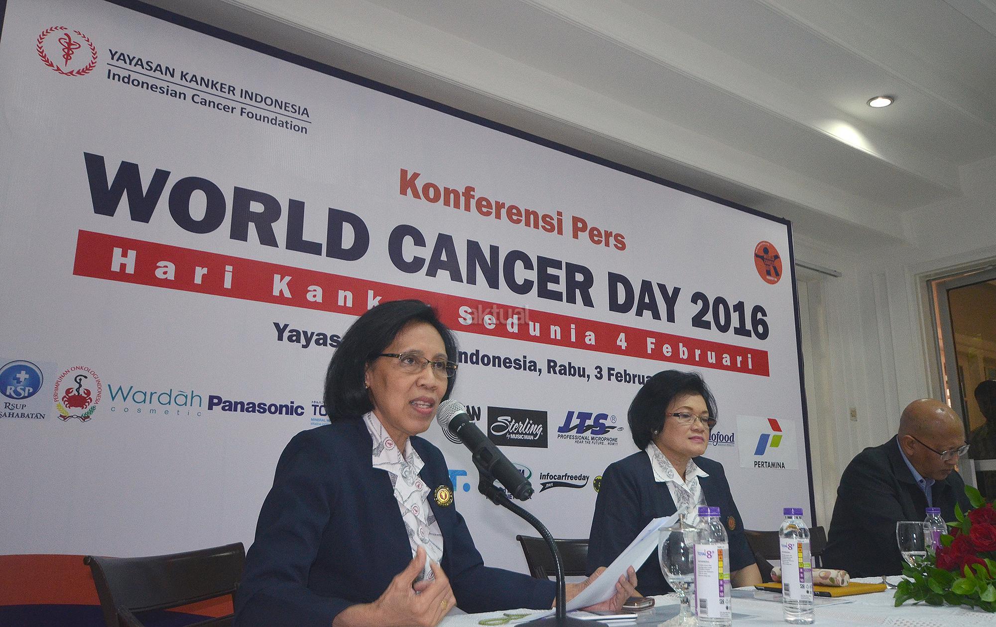 Anggota Pelayanan Sosial Prof Aru W.Sudoyo(kanan) didampingi Ketua Umum Yayasan Kanker Indonesia (YKI) Sylvia Harry Purnomo menjelaskan bagaimana dan apa penyakit kanker saat memberikan keterangan media tentang kegiatan YKI dalam menyambut Hari Kanker Sedunia 2016, di Jakarta, Rabu (3/2). Kegiatan yang dilaksanakan setiap tanggal 4 Februari dengan tema tahun ini “We can, I can” akan diisi dengan berbagai aksi antara lain pemeriksaan kesehatan gratis, gerak jalan dan donasi.Aktual.com/Eko S Hilman