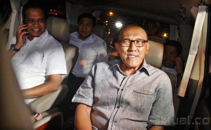 Ketua Umum Partai Golkar Aburizal Bakrie didampingi, Sekjen Golkar Idrus Marham, Bendum Golkar Setya Novanto dan Ketua DPP Golkar Fuad Hasan Mansur, duduk satu mobil usai bertemu Ketum PDIP Megawati di kediamannya, Jalan Teuku Umar, Jakarta Pusat, Minggu (18/5/2014). Tidak ada keputusan, tidak ada deal, antara Pertemuan Aburizal dan Megawati. Mega didampingi Sekretaris Jenderal PDI-P Tjahjo Kumolo, Ketua Badan Pemenangan Pemilu PDI-P Puan Maharani. Aktual/Tino Oktaviano