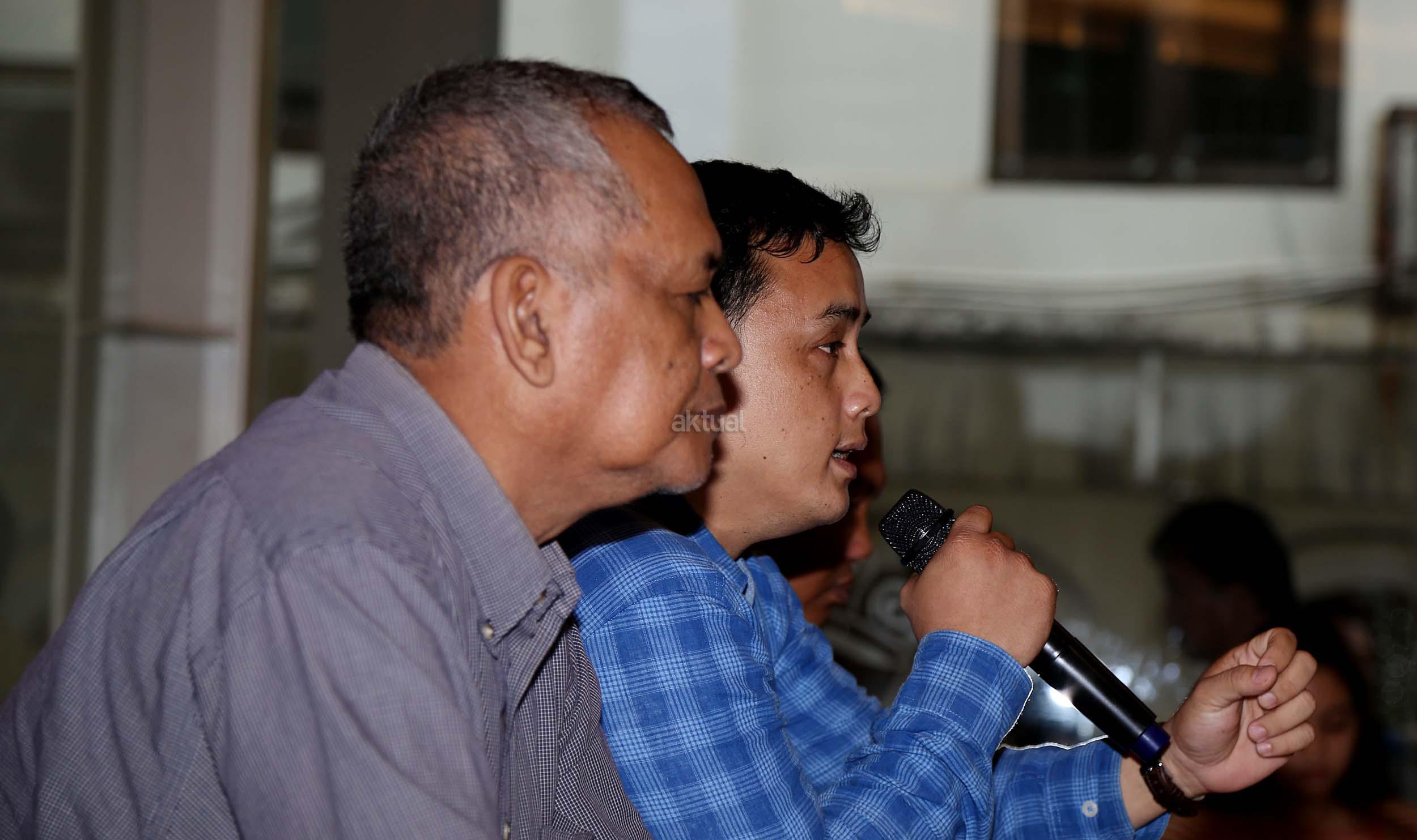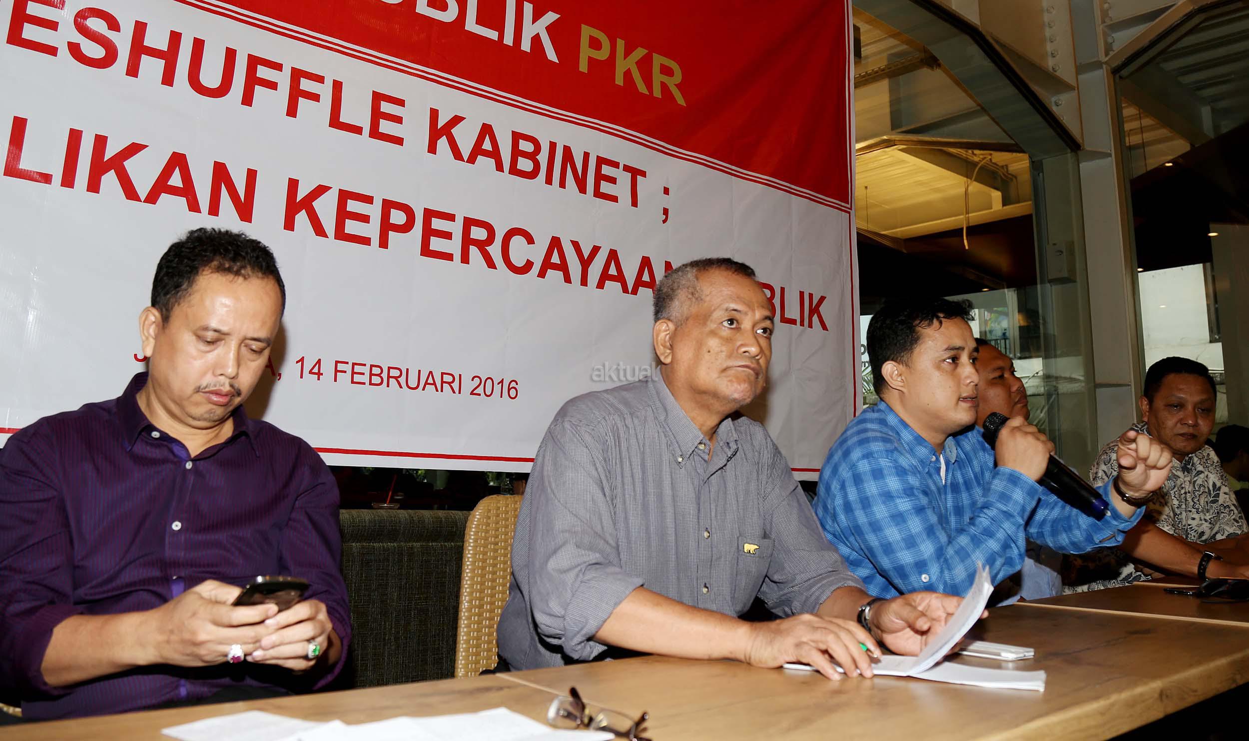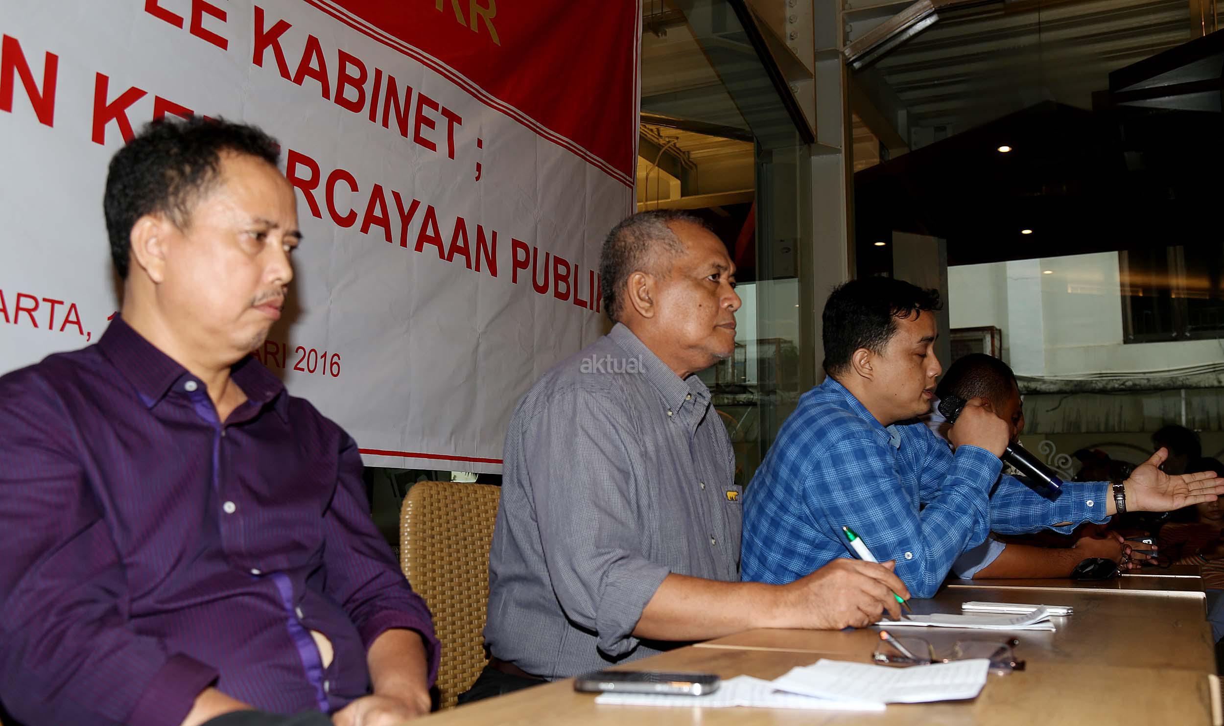 Kiri-kanan; Ketua Presidium Indonesia Police Watch (IPW) Neta S Pane, Direktur Institut Ekonomi Politik Soekarno Hatta (IEPSH) Hatta Taliwang, Sekjen Perhimpunan Kedaulatan Rakyat (PKR) Khalid Zabidi, Pengamat Politik Hendro Satrio, dan Koordinator Gerakan Indonesia Bersih Adhie M Massardi saat dialog publik di Menteng, Jakarta, Minggu (14/2/2016). Dialog yang diselenggarakan oleh Perhimpunan Kedaulatan Rakyat (PKR),mengangkat tema "Resuffle Kabinet : Mengembalikan Kepercayaan Publik".