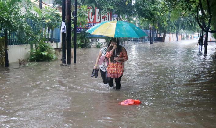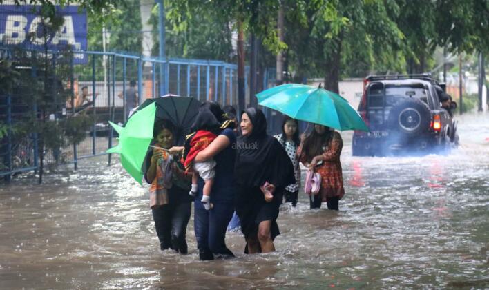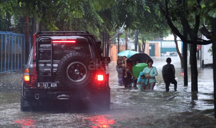 Hujan deras yang mengguyur wilayah Ibukota, Minggu (14/2) siang membuat sejumlah ruas jalan tergenang. Di Jakarta Selatan, genangan terparah diantaranya melanda Jl Kemang Raya dan Jl Kemang IX, Kelurahan Bangka, Mampang Prapatan dengan ketinggian air mencapai 60 sentimeter (cm) hingga 1 meter.