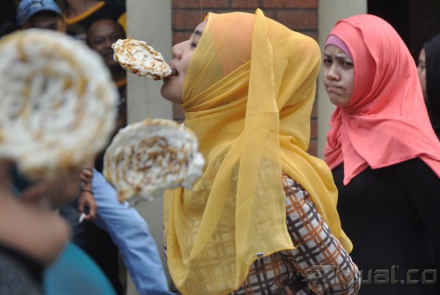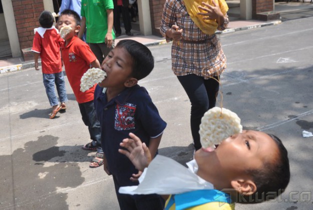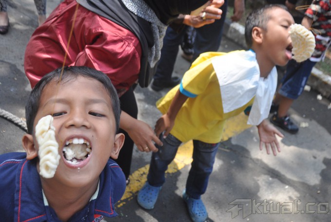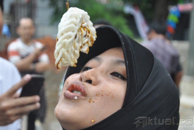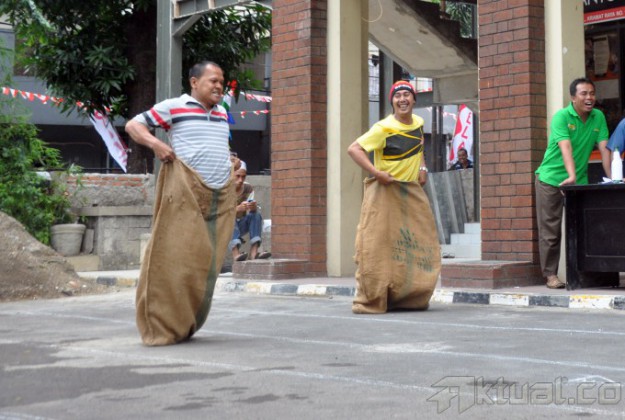 Sejumlah Karyawan dan Staf Pengurus Besar Nahdlatul Ulama (PBNU), melakukan lomba di Halaman PBNU, Jalan Keramat, Jakarta, Sabtu (16/8/2014), Lomba tersebut digelar dalam rangka menyambut hari Kemerdekaan Republik Indonesia.Aktual/Junaidi Mahbub