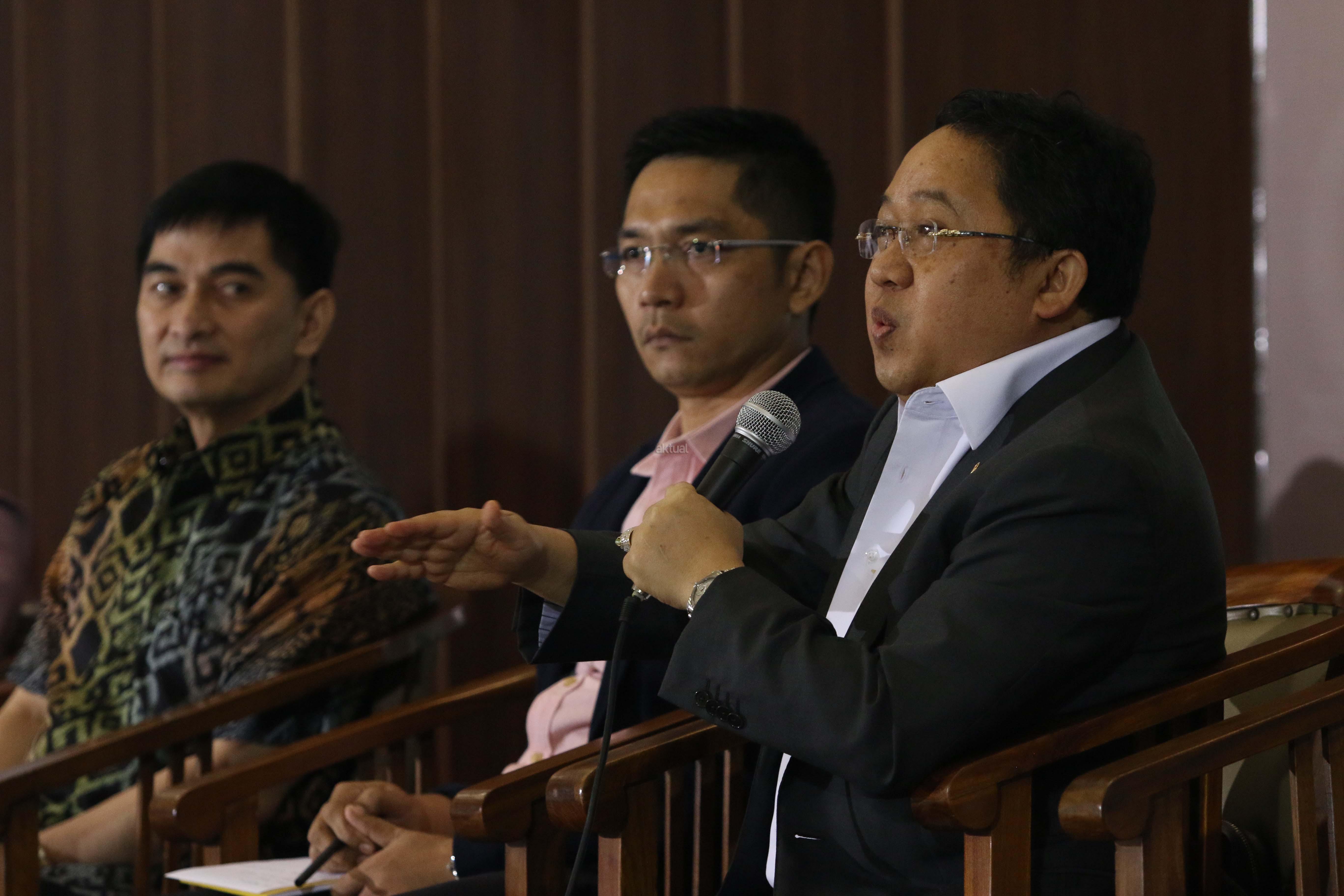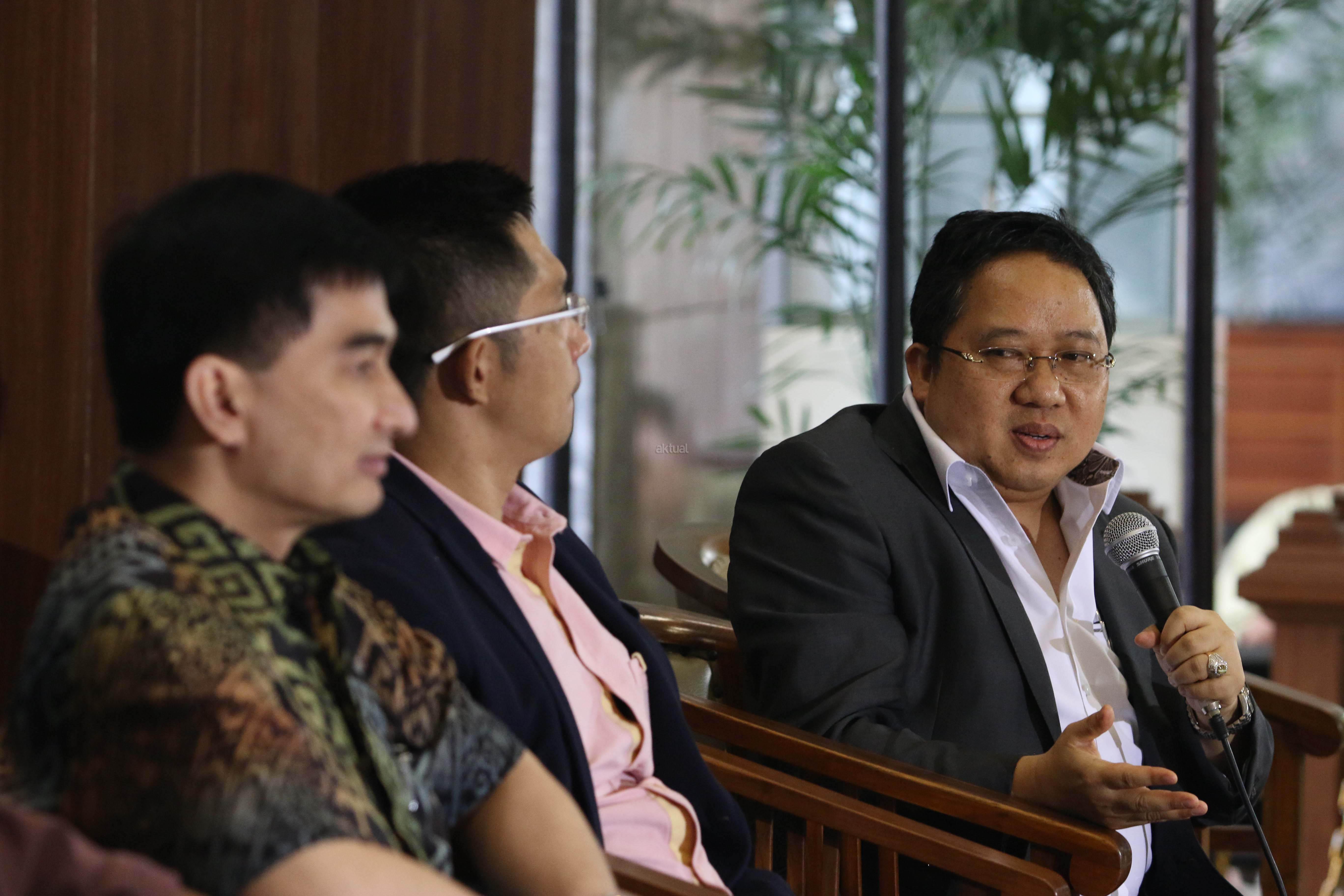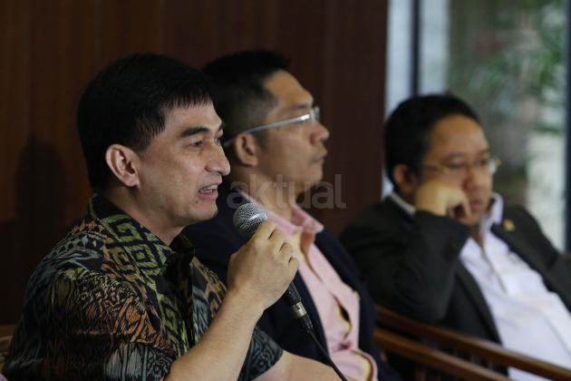 Dualisme Partai Ka'bah: Wakil Sekretaris Jenderal DPP PPP hasil Muktamar Bandung Syaifullah Tamliha (kanan) bersama Anggota Komisi III yang juga Sekretaris Jenderal PPP hasil Muktamar Jakarta Dimyati Natakusuma (kiri) dan Direktur Eksekutif Konstituen Indonesia Yusuf Warsyim (tengah) menjadi pembicara dalam diskusi Dialektika Demokrasi di Komplek Parlemen Senayan, Jakarta, Kamis (18/2/2016). Diskusi tersebut membahas dualisme peta politik partai Kabah di Parlemen dan Nasional pasca keputusan Menteri Hukum dan Hak Asasi Manusia (Menkumham) Yasonna H Laoly yang memperpanjang kepengurusan PPP hasil muktamar Bandung. Foto : Junaidi/Aktual.com