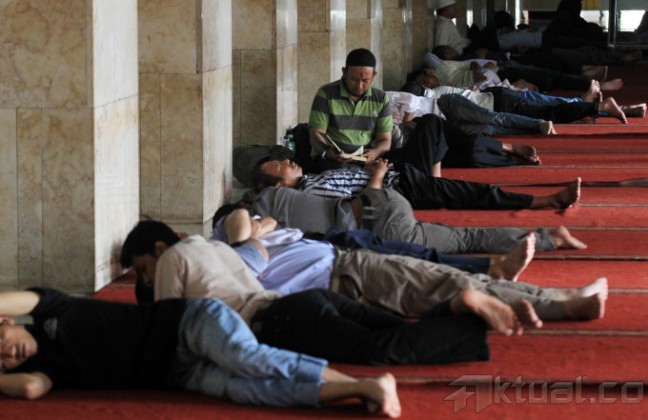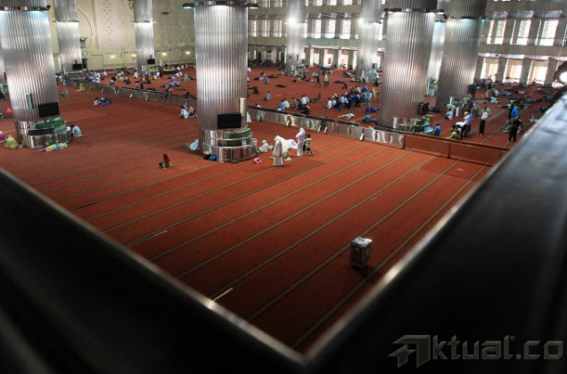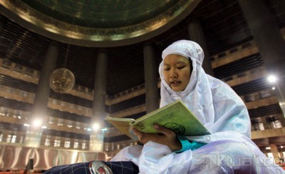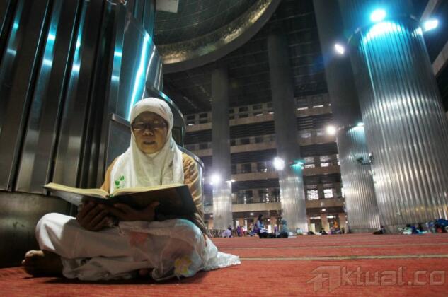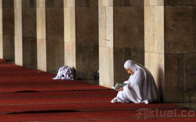 Jemaah muslimah tadarus Alquran di Masjid Istiqlal, Jakarta, Kamis (3/7/2014). Sebagian umat muslim mengisi waktu luang dengan membaca Al Qur’an dan berdzikir untuk mengharap berkah saat bulan Ramadhan Aktual/Tino Oktaviano