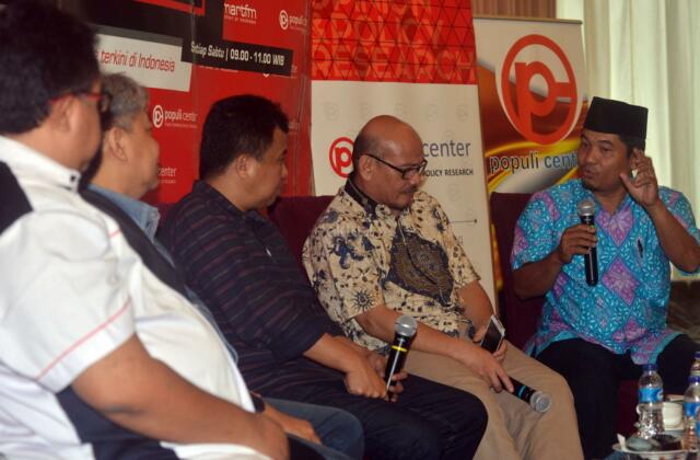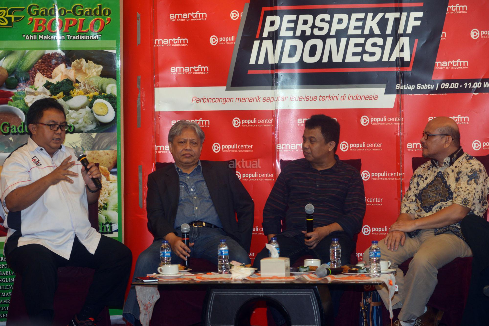 Wakil Ketua Komisi Aparatur negara, Ilham Dilmy, Pengamat Ketatanegaraan, dan Sistem PolitikLaurel Heydir, Ketua Lingar Madani (LIMA), Ray Rangkuti, Direktur Eksekutif Pilkada Watch, Wahyu Agung Permana, Host Ichan Laulembah menjadi pembicara dalam acara diskusi di Jakarta, Sabtu (20/2/2016). Diskusi tersebut membahas tema "Pelantikan Kepala Daerah = Pergantian Pejabat Daerah",. Foto Junaidi/Aktual.com