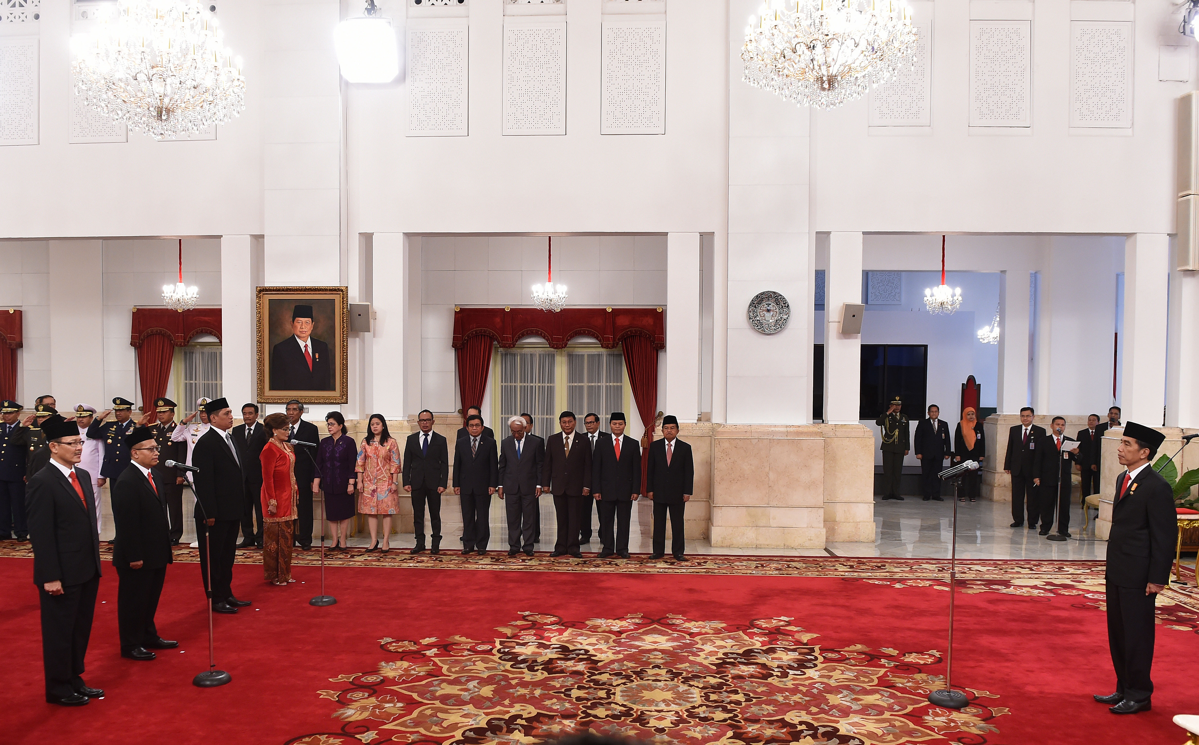 Direksi dan Dewan Pengawas BPJS Kesehatan serta BPJS Ketenagakerjaan diambil sumpah jabatannya di Istana Negara, Jakarta, Selasa (23/2). Selain melantik jajaran Direksi BPJS Kesehatan dan BPJS Ketenagakerjaan, Presiden Joko Widodo juga melantik jajaran Dewan Pengawas BPJS Kesehatan dan BPJS Ketenagakerjaan masa jabatan 2016-2021. ANTARA FOTO/Puspa Perwitasari/aww/16.