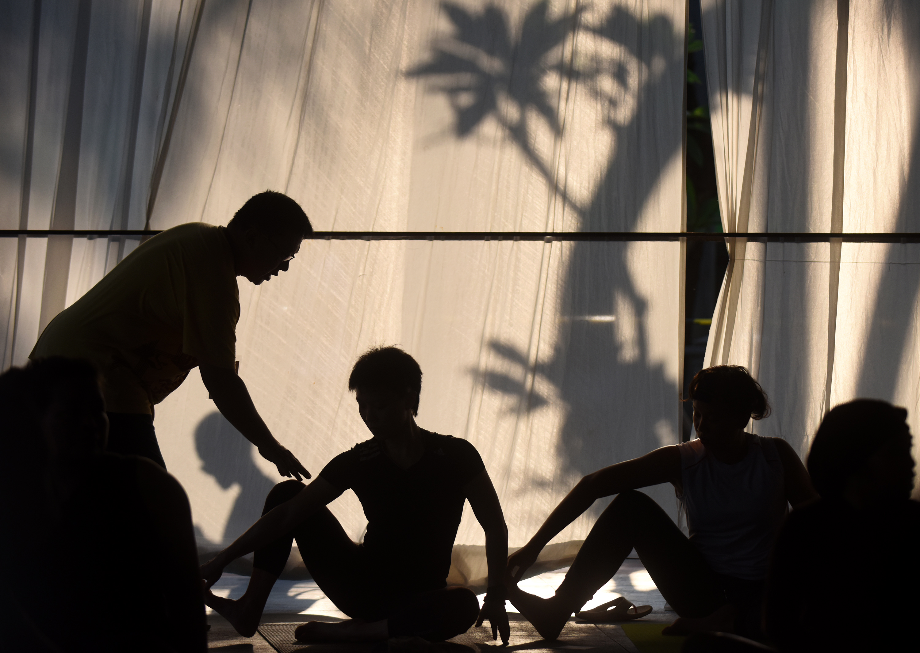 Seorang instruktur memberikan arahan kepada peserta yang mengikuti yoga ketika Yoga Gembira Festival 2016 di Taman Menteng, Jakarta, Sabtu (16/4). Festival yang diprakarasi oleh Komunitas Yoga Gembira itu mengambil tema Growing Together dengan menampilkan 29 kelas yoga yang dapat dipilih oleh peserta, berlangsung hingga 17 April mendatang. ANTARA FOTO/Wahyu Putro A/pd/16