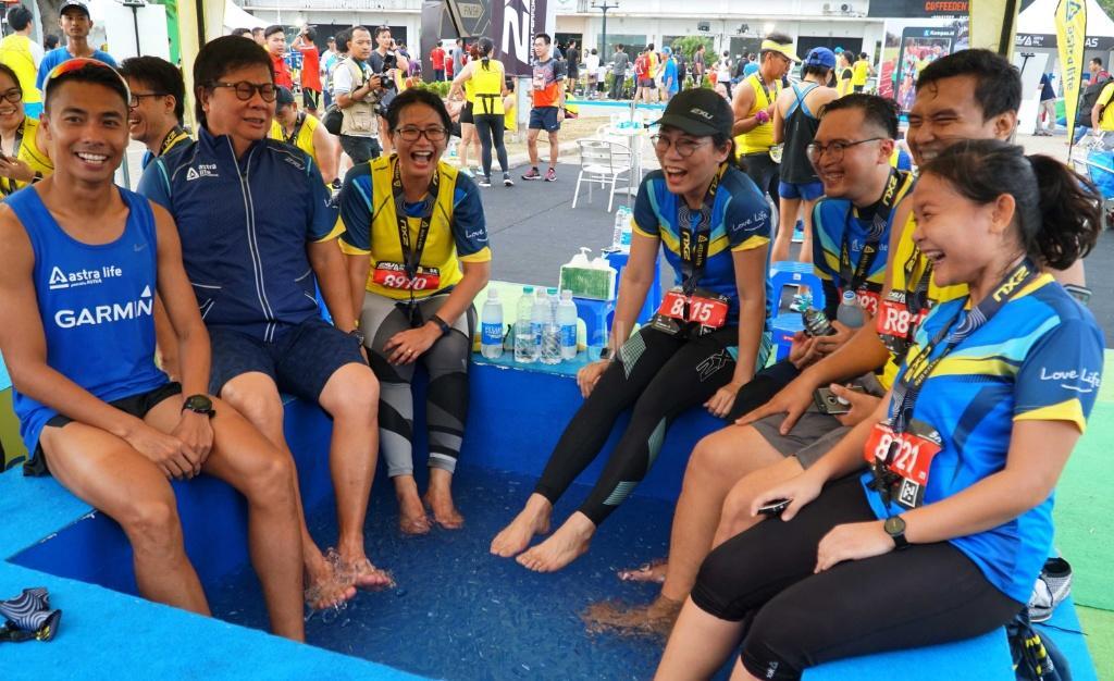 Presdir Astra Life Auddie Wiranata saat berbincang dengan para pelari peserta 2XU Compression Run Indonesia 2017 di booth Astra Life yang menghadirkan fasilitas recovery dan relaksasi paska berlari di area Love Life Zone berupa Giant Ice Pool dan fasilitas physiotherapy guna mempercepat foot recovery setelah berlari dan mencegah cedera, sertaberbagai penawaran menguntungkan dan permainan yang menarik.