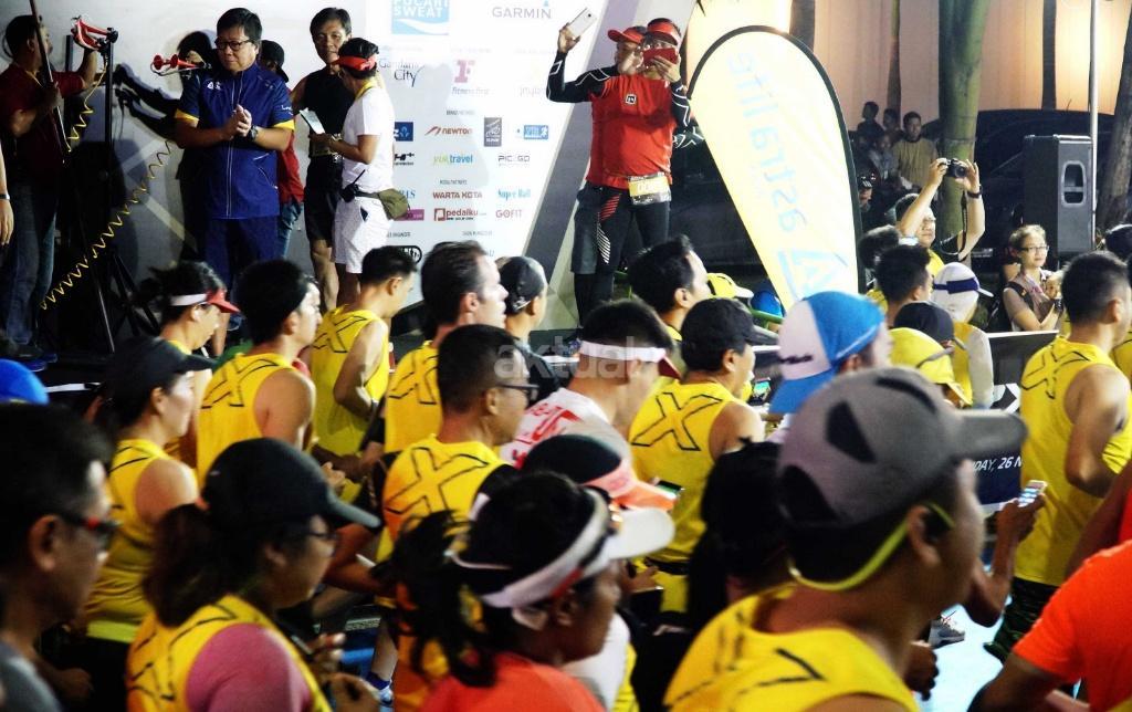 Presiden Direktur PT ASTRA AVIVA LIFE (Astra Life) Auddie A. Wiranata, berdiri diatas stage saat melakukan flag off start melapas ribuan pelari saat acara 2XU Compression Run Indonesia 2017 di kawasan Scientia Square Park, Summarecon Serpong, Minggu (26/11/2017). PT ASTRA AVIVA LIFE (Astra Life) untuk ketiga kalinya kembali hadir sebagai Official Life Insurance Partner di acara 2XU Compression Run Indonesia 2017 dan menjadi Runner’s Life Buddy di ajang tersebut. Astra Life hadir untuk menjadi “teman lari” bagi 6000 pelari peserta lomba serta siap melindungi dan memberikan ketenangan pikiran saat mereka berlari. AKTUAL/Eko S Hilman