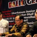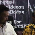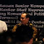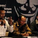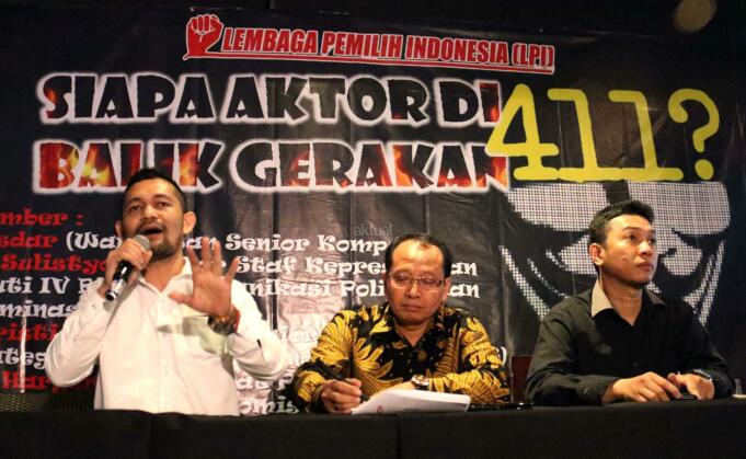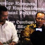 Pengamat Politik dan Intelijen Boni Hargens (kiri) dan Pengamat Sosial Politik The Indonesian Public Institute (IPI) Karyono Wibowo (kanan) saat menjadi pembicara dalam diskusi membahas tentang tuduhan ' Intelijen Error oleh SBY ' di Kawasan Cikini, Jakarta, Jumat (11/11/2016). Aktor politik di balik peristiwa 4 November lalu adalah mantan Presiden Susilo Bambang Yudhoyono (SBY). Sebab 2 hari sebelum peristiwa itu SBY menggelar konferensi pers di Cikeas menanggapi aksi demo. Gerakan ini diawali dengan konferensi pers politik oleh Ketua Umum Partai Demokrasi Susilo Bambang Yudhoyono di Cikeas pada tanggal 2 November 2016. Substansi konferensi pers memperlihatkan kepanikan dan kemarahan SBY terhadap Ahok dan pemerintahan Jokowi. AKTUAL/Munzir