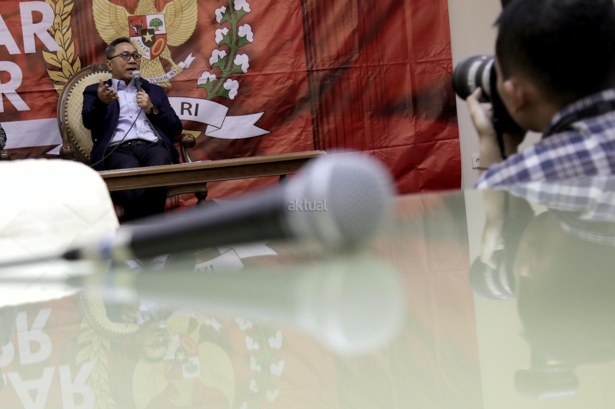 Ketua MPR Zulkifli Hasan saat diskusi dengan tema, “4 Pilar sebagai Instrumen Penangkal Informasi Hoax” di Jakarta, Senin (12/3/18). Maraknya berita-berita hoax membahayakan bangsa Indonesia. Apalagi jelang pemilu. Untuk mengeremnya, masyarakat ditekankan lebih meresapi materi empat pilar kebangsaan dan mengamalkannya. AKTUAL/Tino Oktaviano