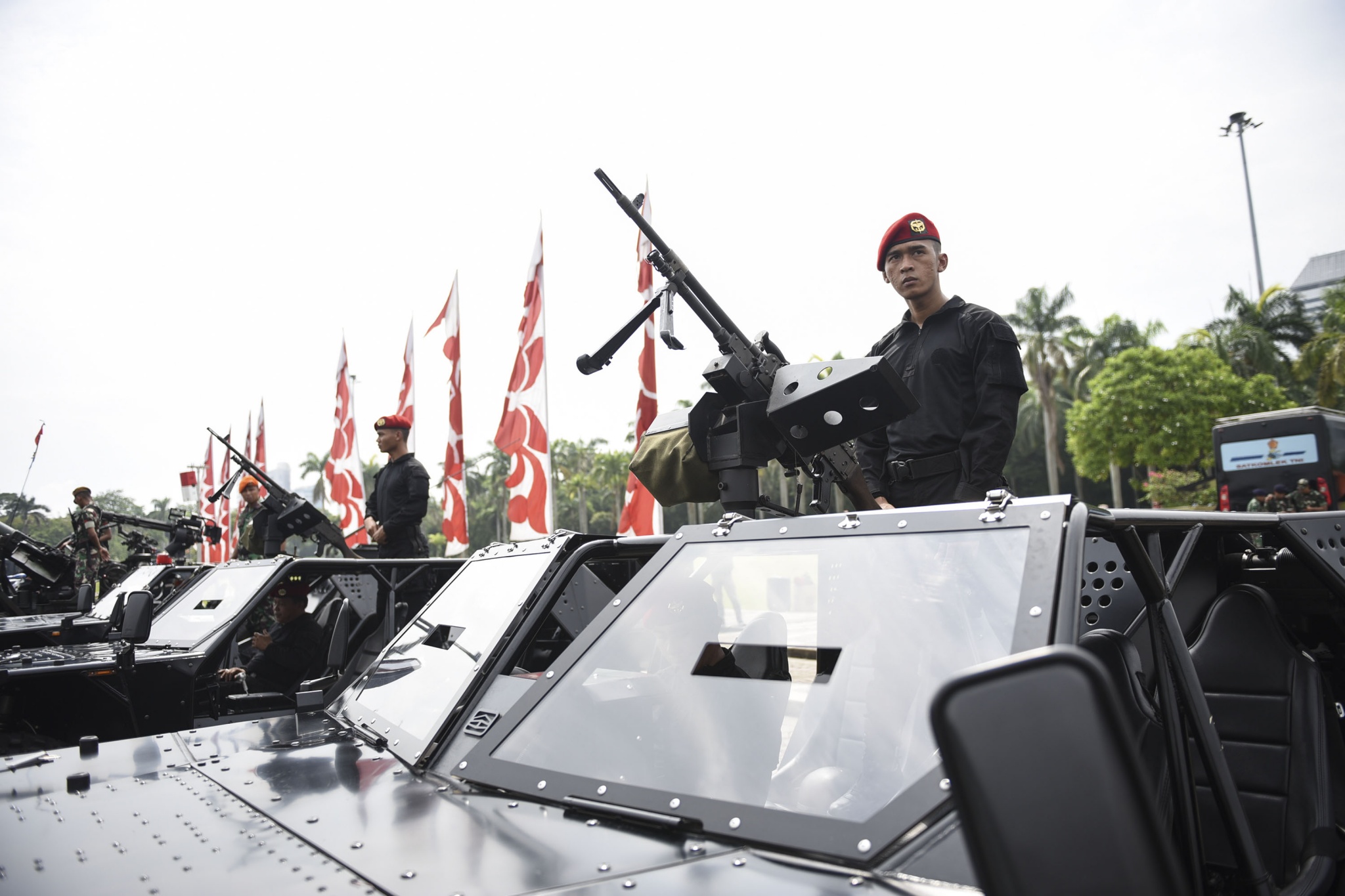 Ribuan Personil gabungan mengahdiri Apel Kesiapan Natal, Tahun Baru 2019 serta menjelang Pemilu legislasi dan Presiden 2019 di lapangan silang Monas, Jakarta, Jumat (30/11/2018). Apel Kesiapan Natal, Tahun Baru 2019 serta menjelang Pemilu legislasi dan Presiden 2019 ini diikuti 50.000 personel dari Angkatan Darat, Angkatan Laut, Angkatan Udara, dan Polri.