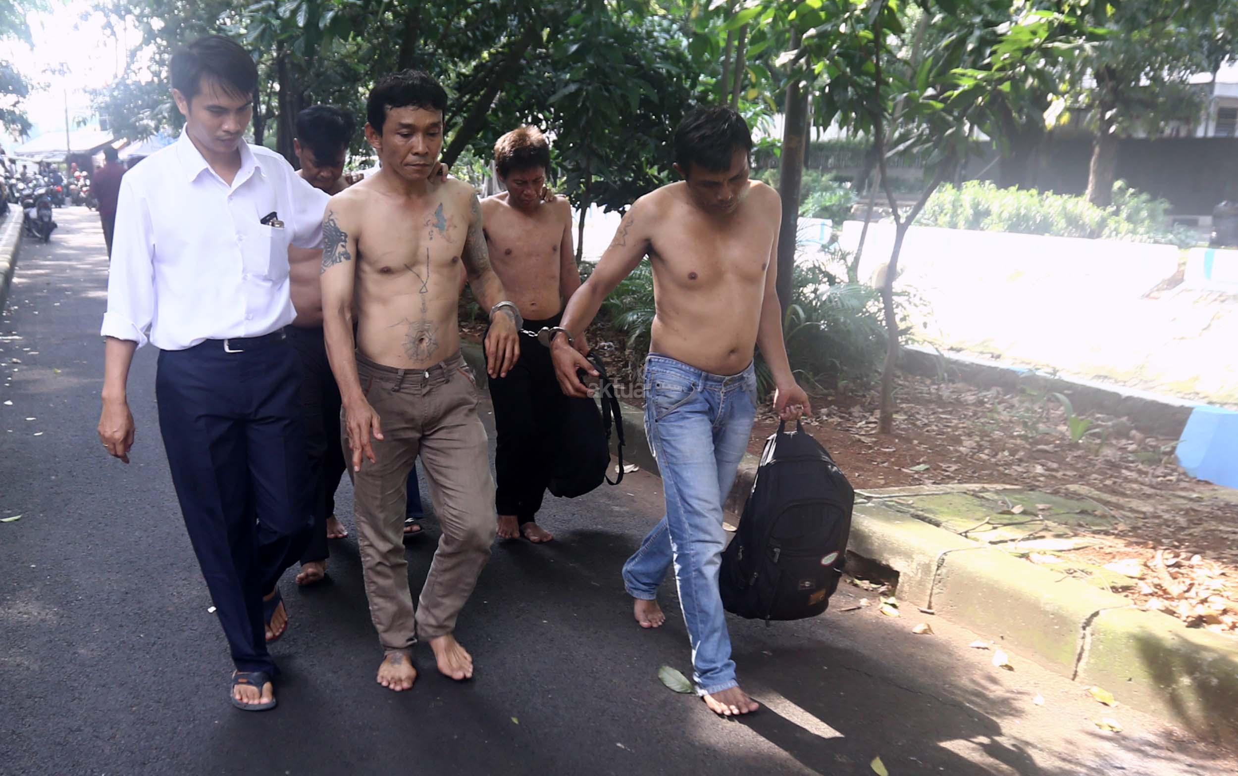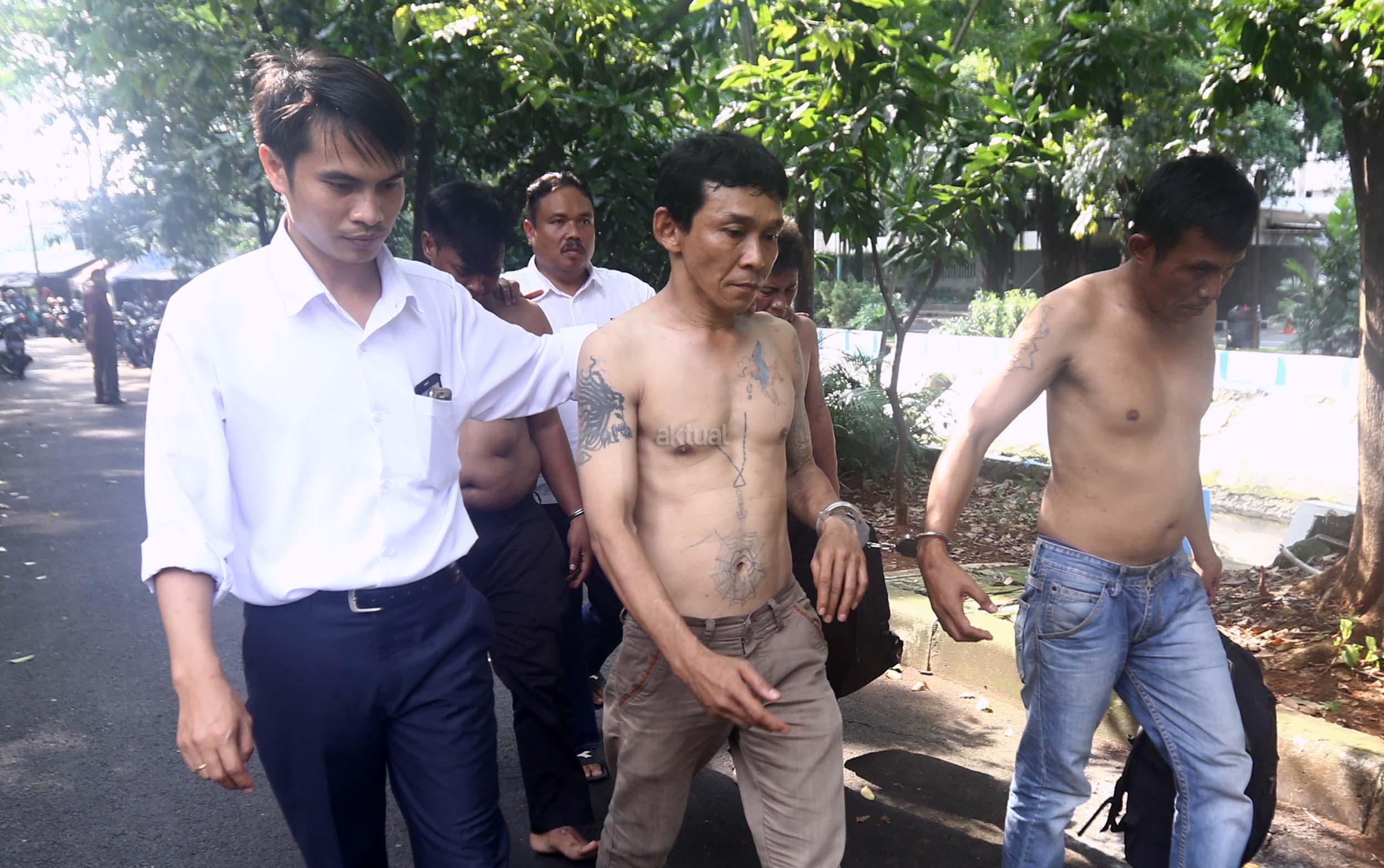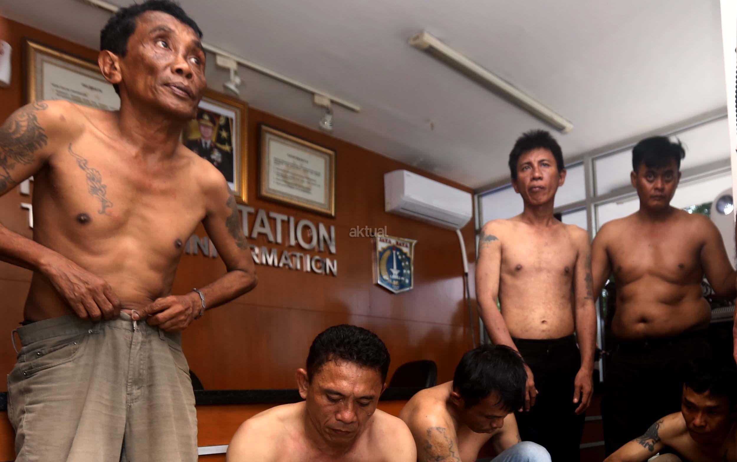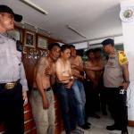 Petugas memeriksa enam tersangka pencopet jaringan Lampung saat diamankan di Bundaran HI, Jakarta, Kamis (2/3/2017). 6 Pencopet jaringan Lampung tertangkap tangan di Metromini. Aksi kelompok pencopet handphone ini berhasil digagalkan penumpang yang berteriak sampai terdengar petugas kepolisian yang sedang melakukan pengamanan kedatangan Raja Arab Saudi di Bundaran HI.