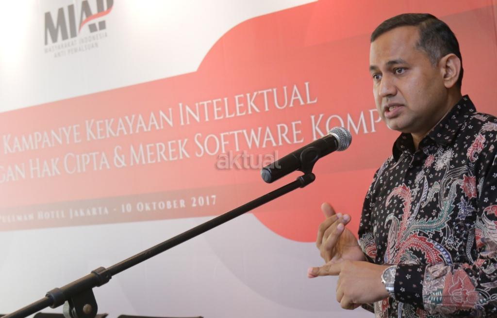 Suasana Sosialisasi Kampanye Kekayaan Intelektual Terkait Perlindungan Hak Cipta & Merek Software Komputer di Jakarta, Selasa (10/10). Sejalan dengan upaya Masyarakat Indonesia Anti-Pemalsuan (MIAP) dalam mensosialisasikan kampanye perlindungan kakayaan intelektual yang telah berbagi informasi mengenai studi malware terbaru “Cybersecurity Risks from Non-Genuine Software” dengan fokus pada risiko infeksi malware pada perangkat lunak dari pengguna bajakan. 92% laptop & komputer dengan software bajakan di wilayah Asia Pasifik terinfeksi malware berbahaya. AKTUAL/Tino Oktaviano