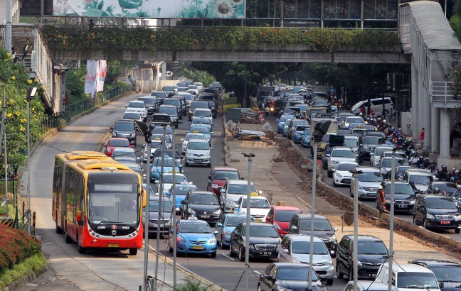 Kemacetan yang terjadi di sepanjang Jalan Gatot Subroto, yang membuat Transjakarta harus berhenti sedikitnya 15 menit semakin memperburuk keadaan.