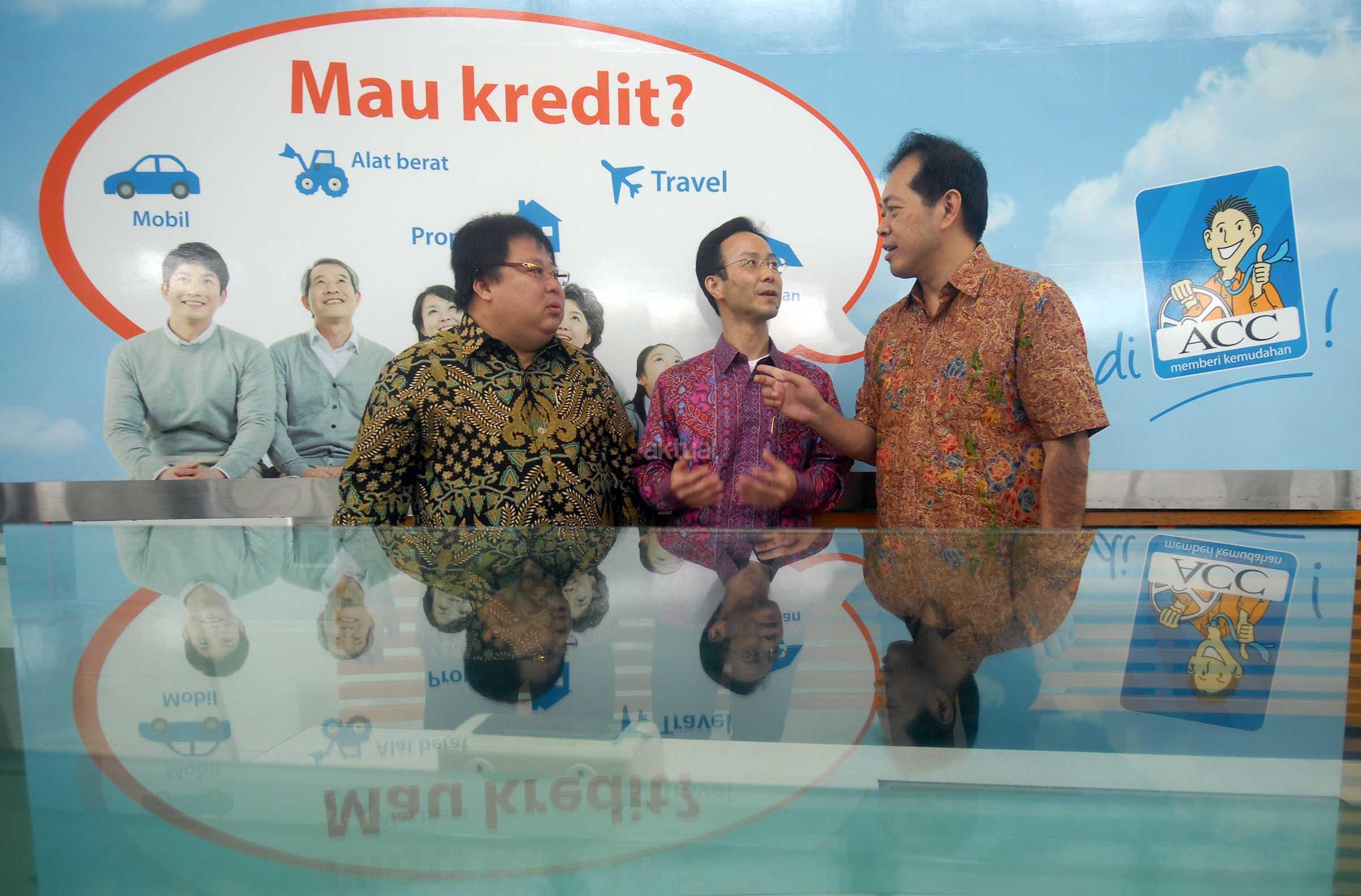 Chief Executive Officer Astra CreditCompanies (ACC) Jodjana Jody ( kanan) berbincang dengan Marketing Director Toyota Astra Motor Suichi Ishii (tengah) dan Chief Operation Office Auto 2000 Ivan Sadik di sela-sela Bazaar Sienta di Jakarta, Sabtu, 17 September 2016. Hingga bulan Agustus 2016, ACC telah membukukan kinerja pembiayaan sebesar Rp 17,6 Triliun, naik 14 % dari tahun 2015.Sedangkan unit pembiayaan yang diperoleh ACC naik 3,9% sebesar 119.410 unit.