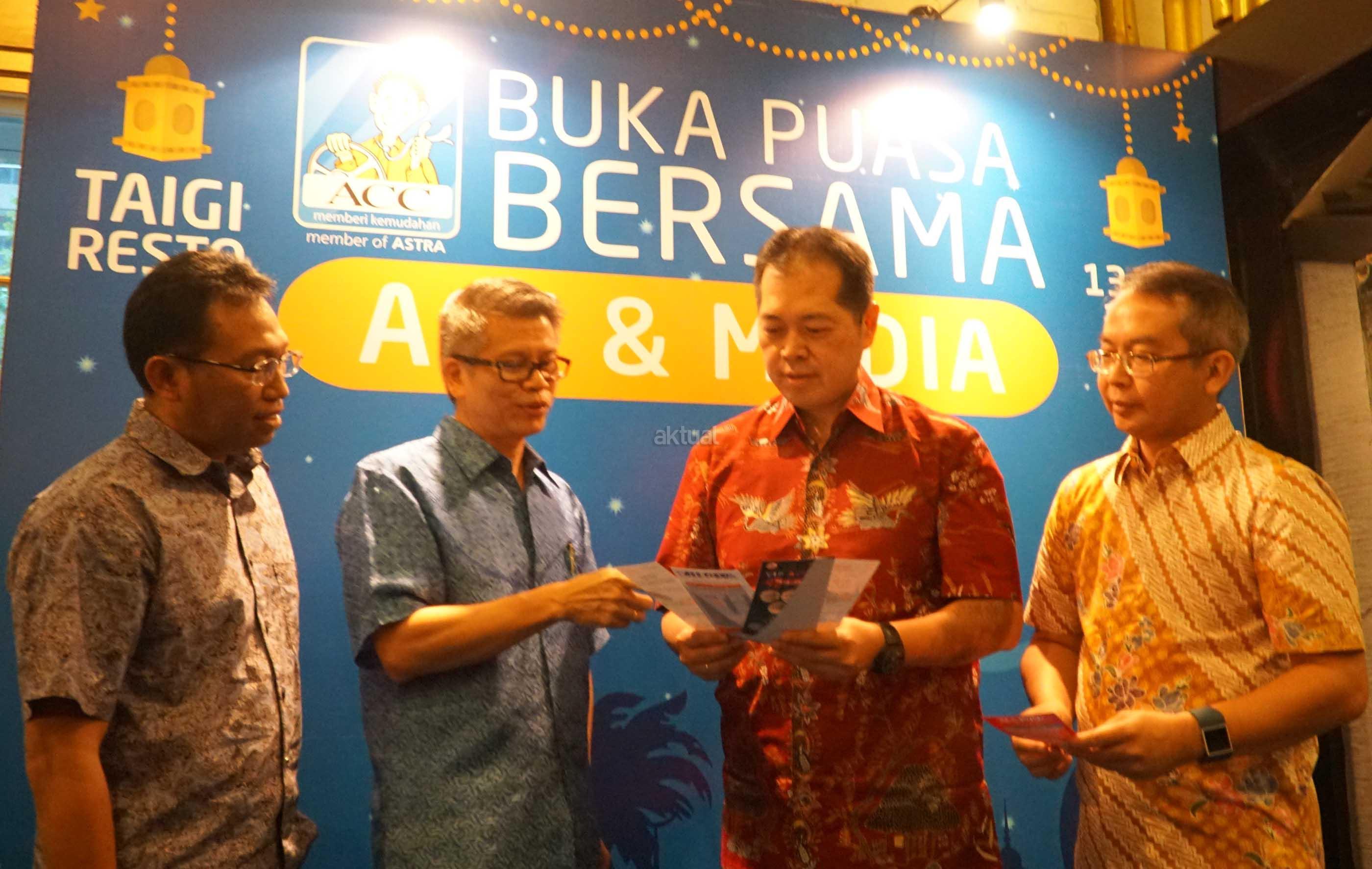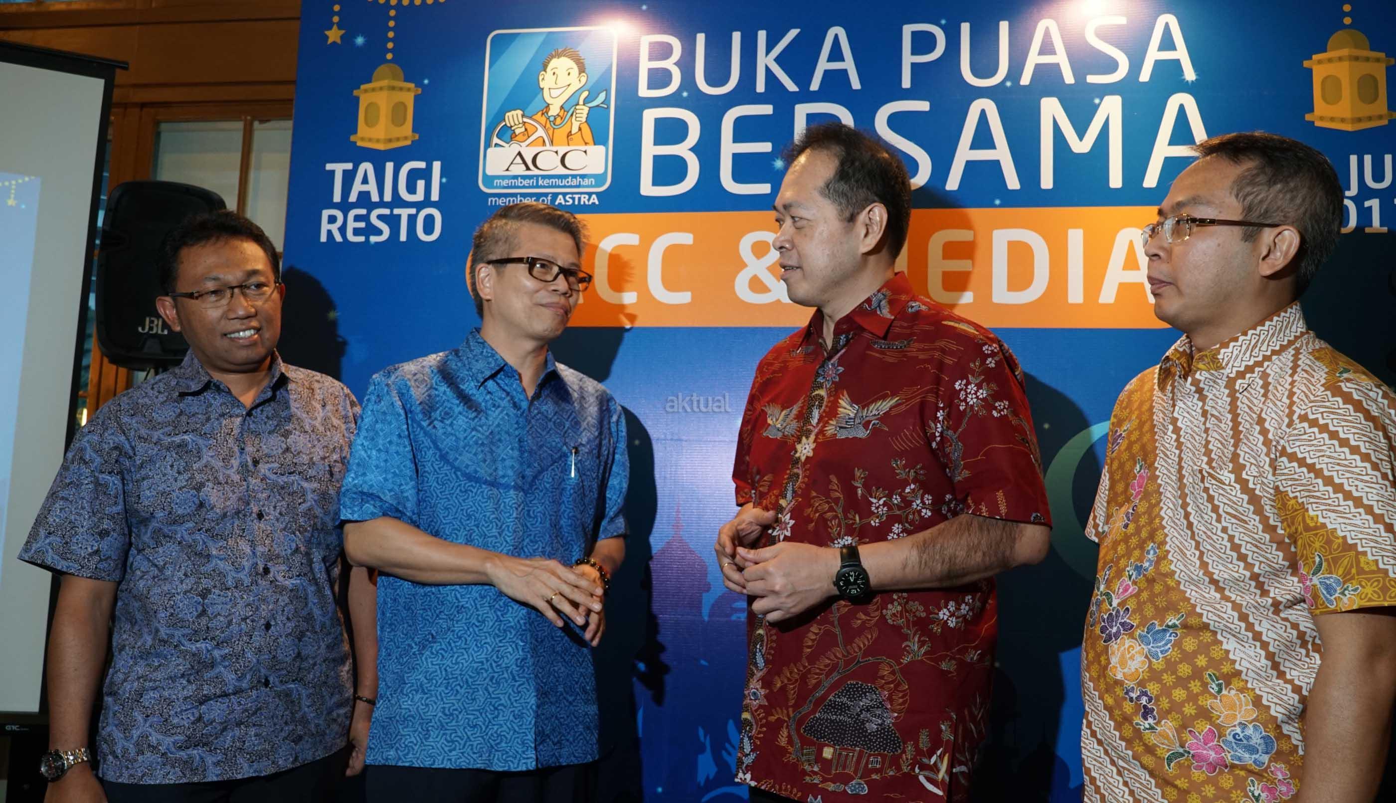 Risk Management Division Head Astra Credit Companies Wempy Kunto Wiambodo (dari kiri),berbincang dengan Chief Finance Officer Samuel Monasseh, Chief Executive Officer Jodjana Jody, dan Chief Risk & IT Officer Handoko Lien disela-sela buka bersama ACC dan media di Jakarta,Selasa (13/6). Untuk mewujudkan komitmen dalam memberikan pelayanan yang terbaik kepada pelanggan , ACC telah menjalin kerja sama dengan situs Tokopedia untuk memudahkan pelanggan melakukan pembayaran angsuran. AKTUAL/Eko S Hilman