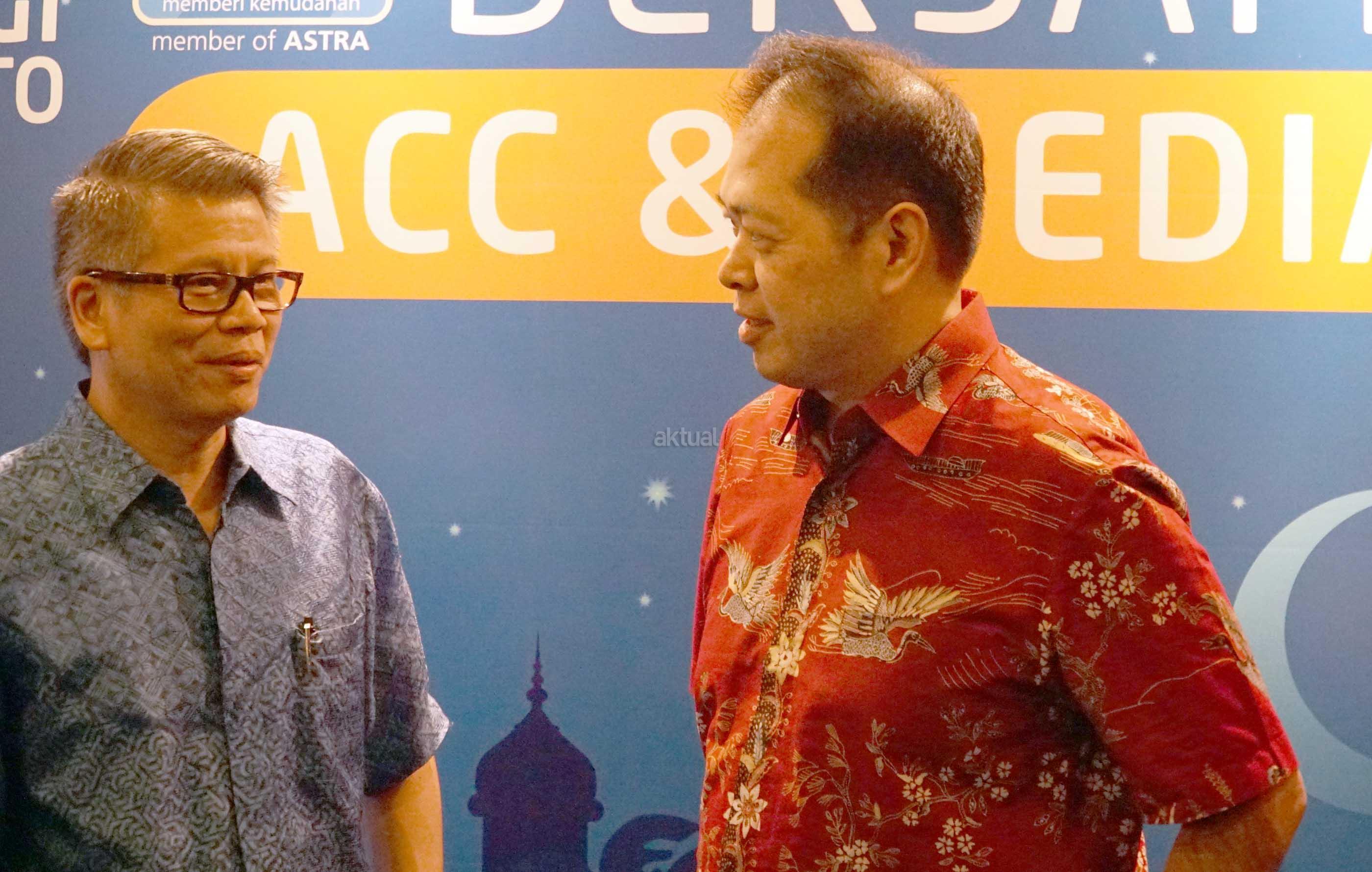 Chief Finance Officer Samuel Monasseh (kiri) berbincang dengan Chief Executive Officer Jodjana Jody (kanan), disela-sela buka bersama ACC dan media di Jakarta,Selasa (13/6). Untuk mewujudkan komitmen dalam memberikan pelayanan yang terbaik kepada pelanggan , ACC telah menjalin kerja sama dengan situs Tokopedia untuk memudahkan pelanggan melakukan pembayaran angsuran. AKTUAL/Eko S Hilman