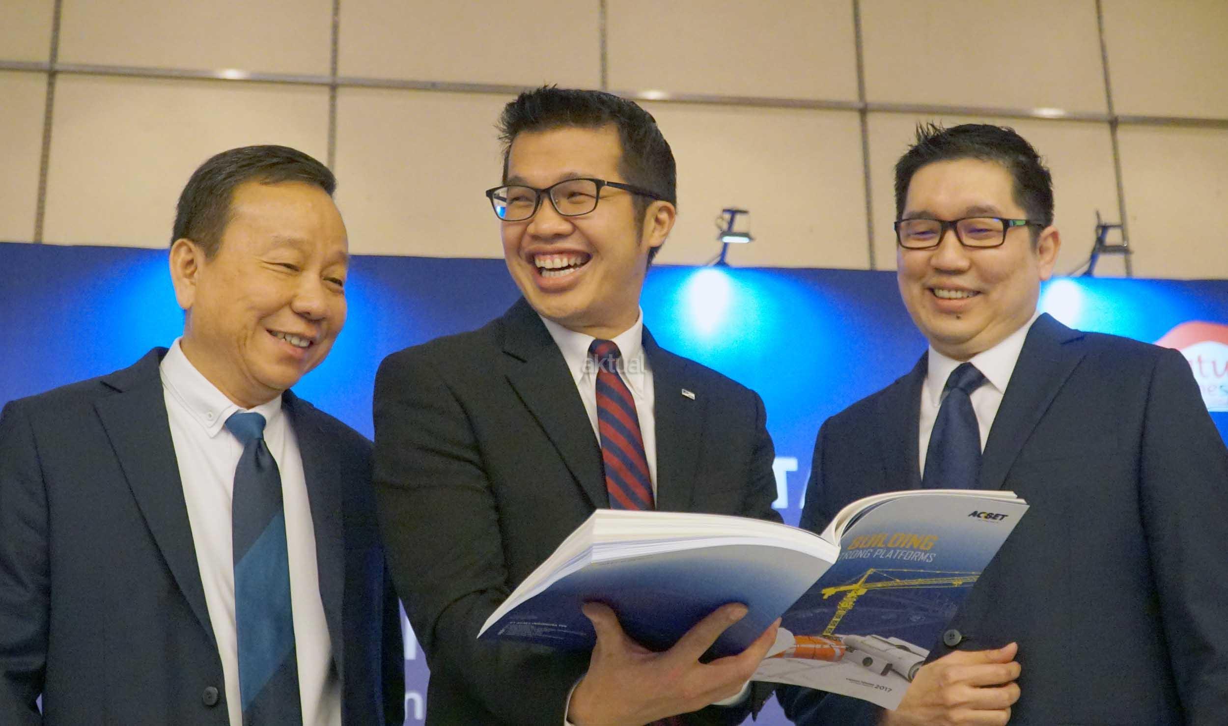 (dari kiri ke kanan) Tan Tiam Seng Ronnie (Wakil Presiden Direktur), Gidion Hasan (Presiden Komisaris), Jeffrey Gunadi Chandrawijaya (Presiden Direktur), berbincang seusai RUPS Tahunan Dan RUPSLB di Financial Hall,Graha CIMB Niaga,Sudirman,Jakarta,Rabu (11/4).Perusahaan konstruksi spesialis beragam yang unggul di bidang fondasi dan ground engineering tersebut mencatat laba bersih sebesar Rp 154,2 Miliar meningkat sebesar 125,7% dibandingkan pada periode yang sama tahun 2016.Sementara pada Rapat juga disetujui untuk dibagikan sebagai dividen sebesar Rp 58,- per setiap saham, atau setara dengan Rp 40,6 Miliar atau 40% dari total laba bersih. AKTUAL/Eko S Hilman