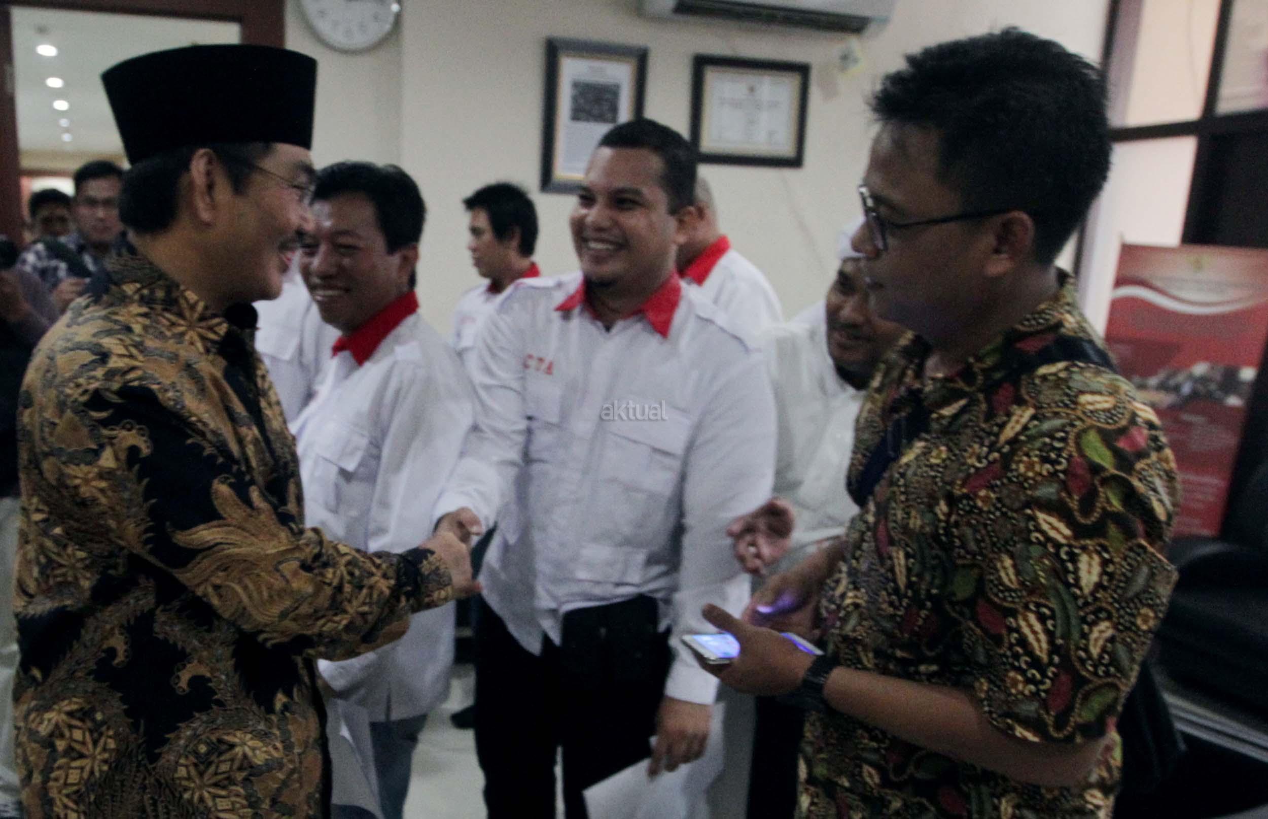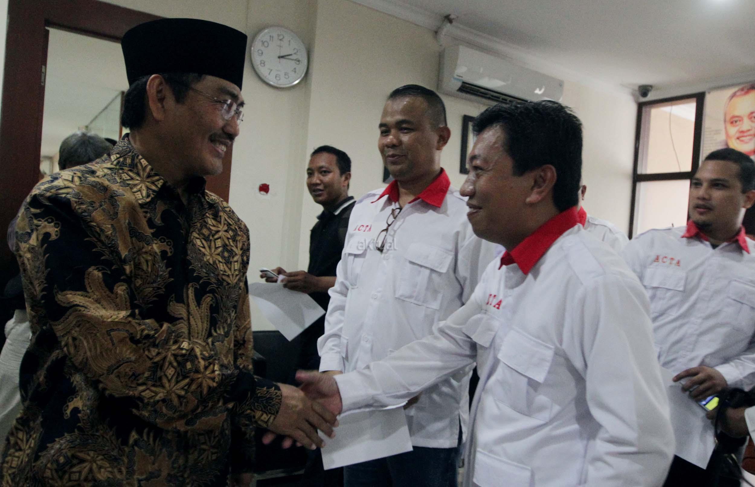 Ketua DKPP Jimly Asshiddiqie bertemu dengan perwakilan Advokat Cinta Tanah Air (ACTA) usai melaporkan Ketua KPU DKI Sumarno, anggota KPU DKI Dahlia Umar, dan Ketua Bawaslu DKI Mimah terkait dengan dugaan pelanggaran kode etik penyelenggara pemilu di kantor DKPP, Jakarta, Jumat (10/3/2017). Tim Advokat Cinta Tanah Air (ACTA) melakukan pelaporan di kantor Dewan Kehormatan Penyelenggara Pemilu (DKPP) terkait pertemuan Ketua KPUD DKI Jakarta Sumarno, Anggota KPU DKI Jakarta Dahlia Umar dan Ketua Bawaslu DKI Jakarta Mimih Susanti pada rapat internal tim sukses Ahok-Djarot di Hotel Novotel, Jakarta Barat. AKTUAL/Munzir
