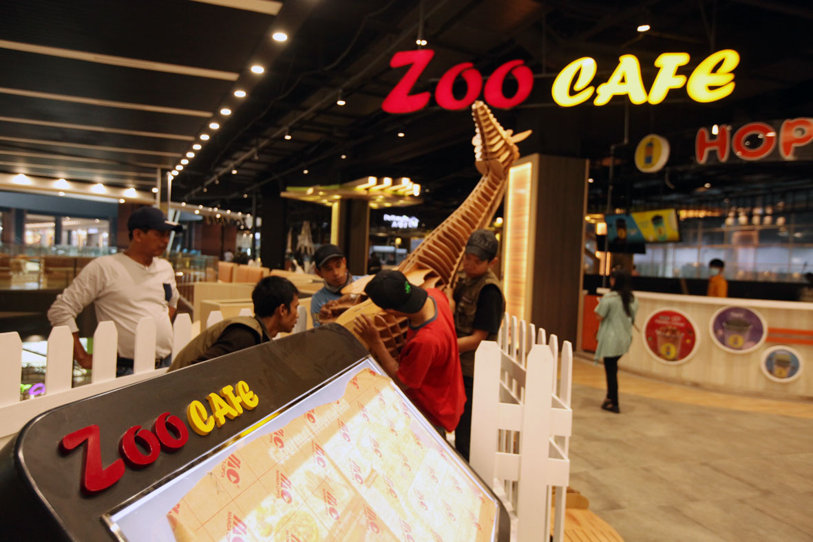 Persiapan ZOO CAFE Food Court bertemakan hutan tempat tinggal para binatang yang dapat dinikmati oleh lansia dan anak-anak. AEON MALL Jakarta Garden City, Selasa (26/9/2017). AKTUAL/Eko S Hilman