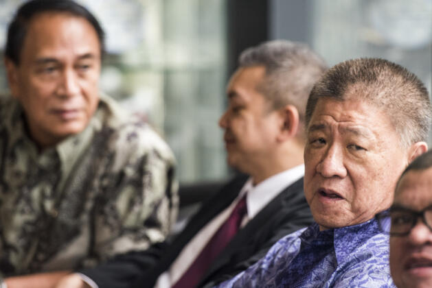 Chairman Agung Sedayu Group Sugianto Kusuma alias Aguan (kedua kanan) menunggu di ruang tunggu seusai menjalani pemeriksaan di gedung KPK, Jakarta, Rabu (13/4). Aguan diperiksa sebagai saksi untuk tersangka Anggota DPRD DKI Jakarta M Sanusi, terkait kasus pembahasan Raperda tentang rencana zonasi wilayah pesisir dan pulau-pulau kecil provinsi DKI Jakarta tahun 2015-2035 dan raperda tentang rencana tata ruang kawasan strategis Pantai Utara Jakarta. ANTARA FOTO/M Agung Rajasa/pd/16
