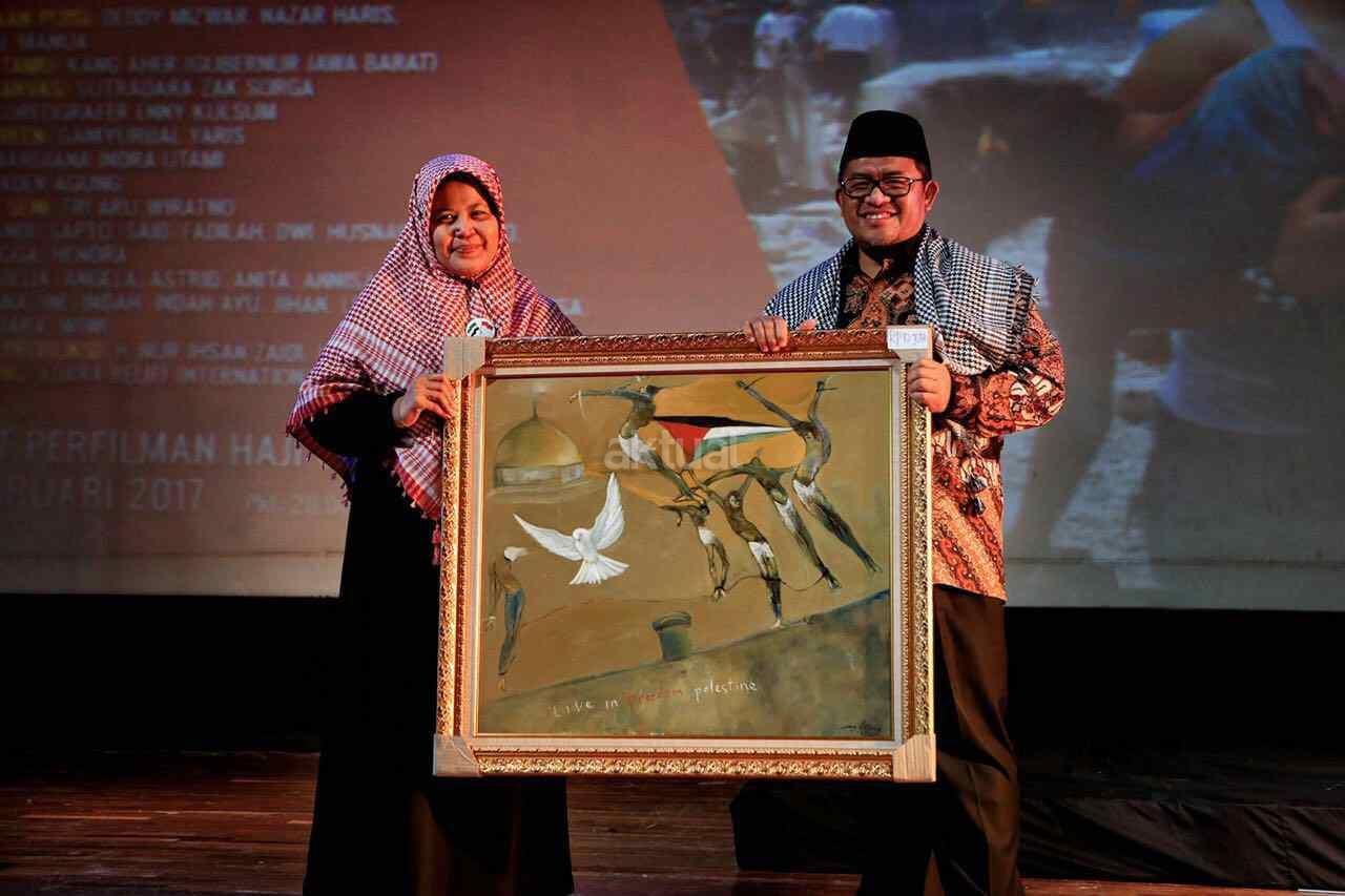 Aher Terima Lukisan bertema Palestina dan Kemanusiaan di Acara Terjebak