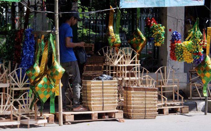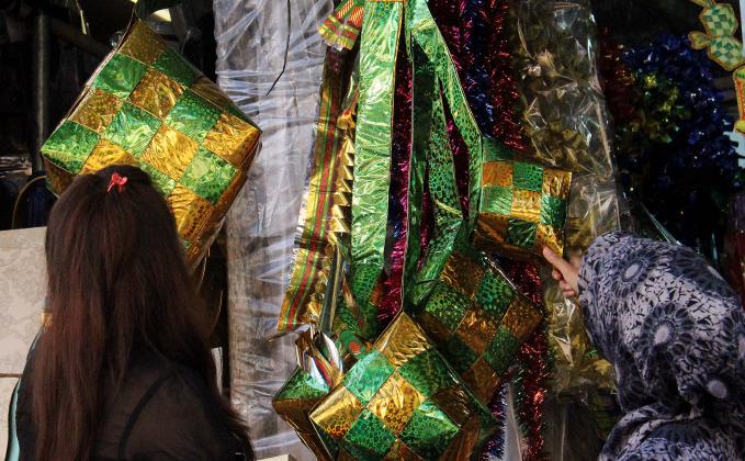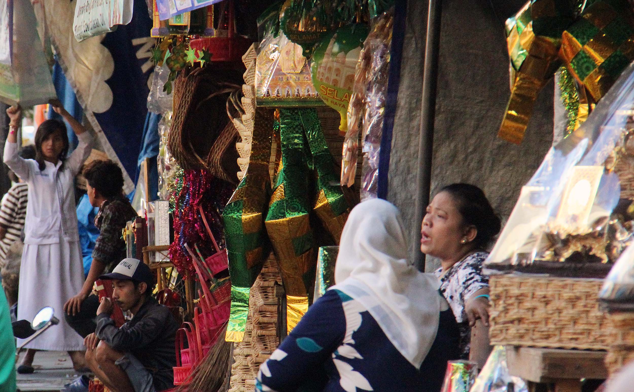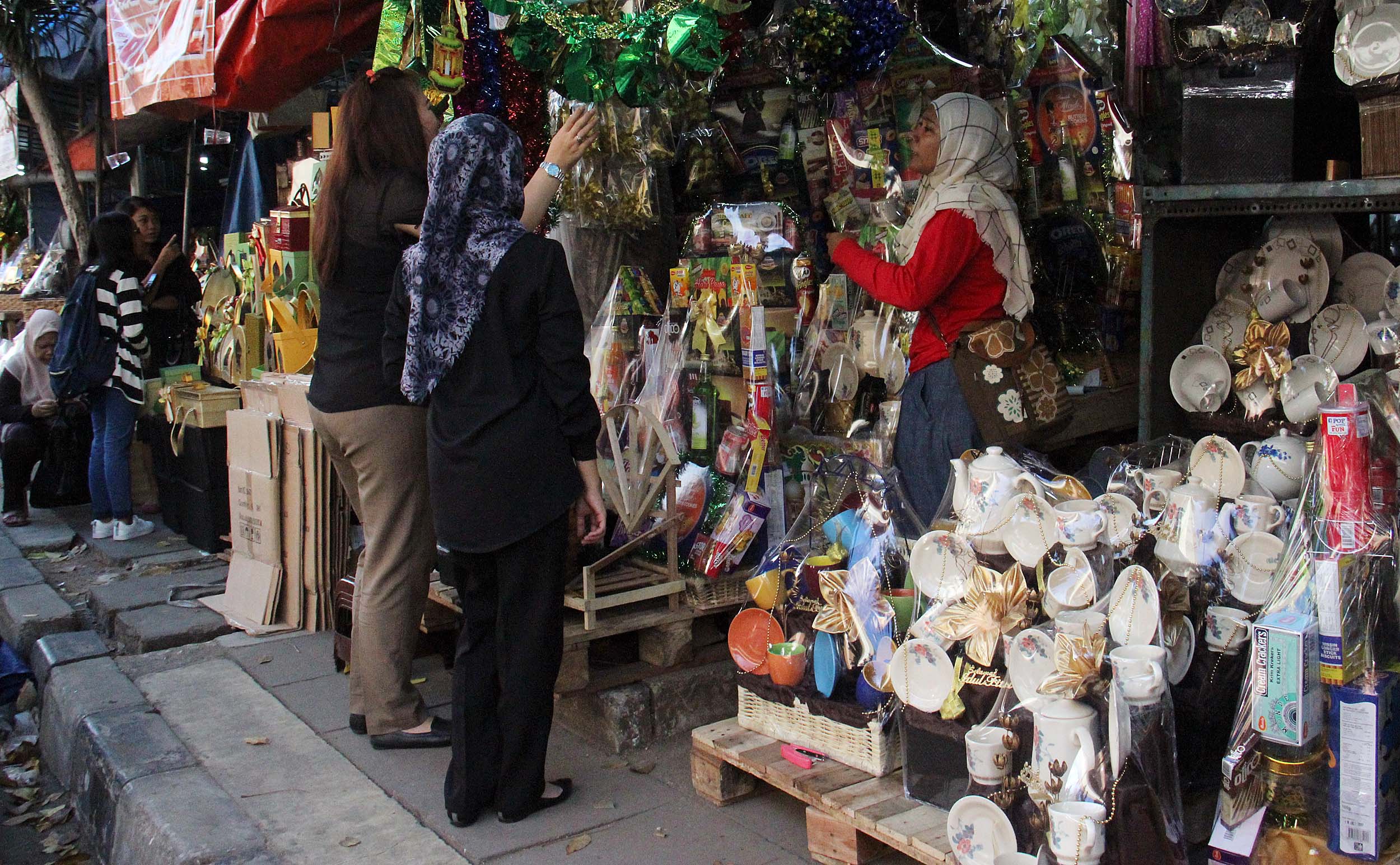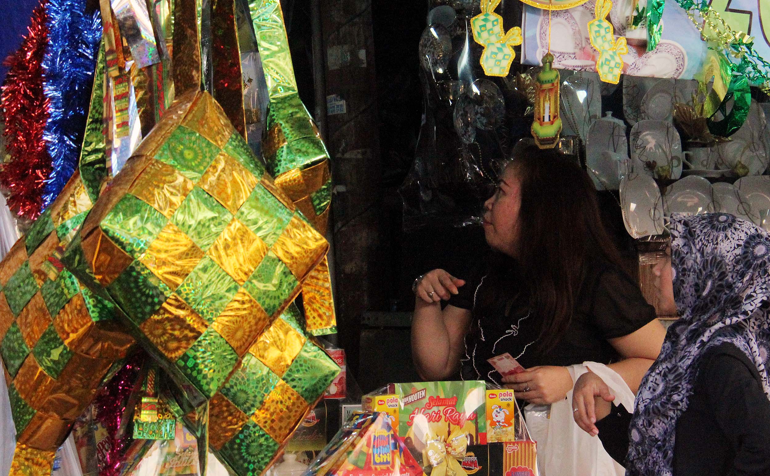 Terlihat pembeli melihat parcel yang berada di di jalan Pegangsaan Timur, Cikini, Jakarta, Kamis (16/6/2016). Rencananya para pedagang parsel lebaran tersebut akan direlokasi ke Jalan Penataran dan Pasar Hias Rias.