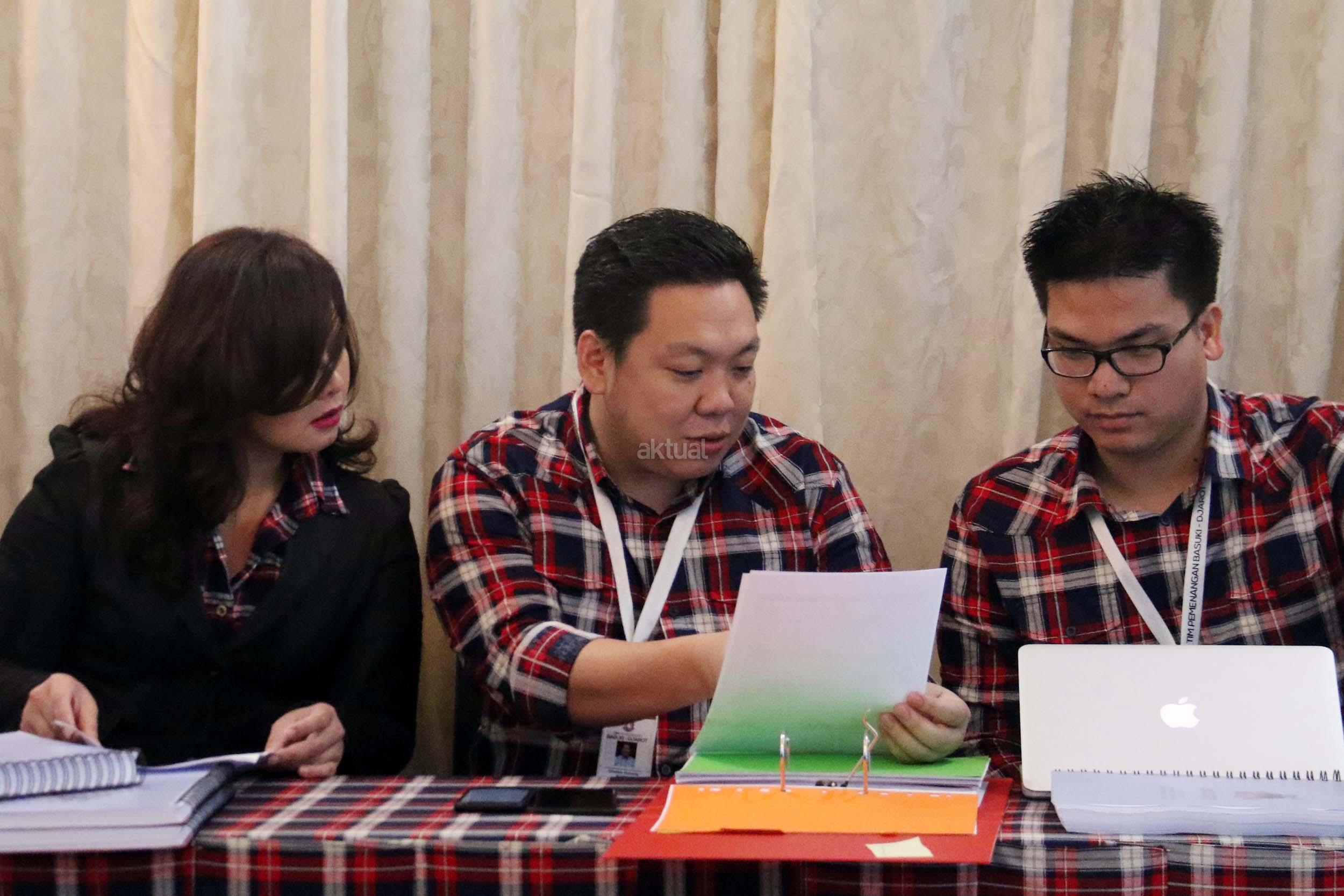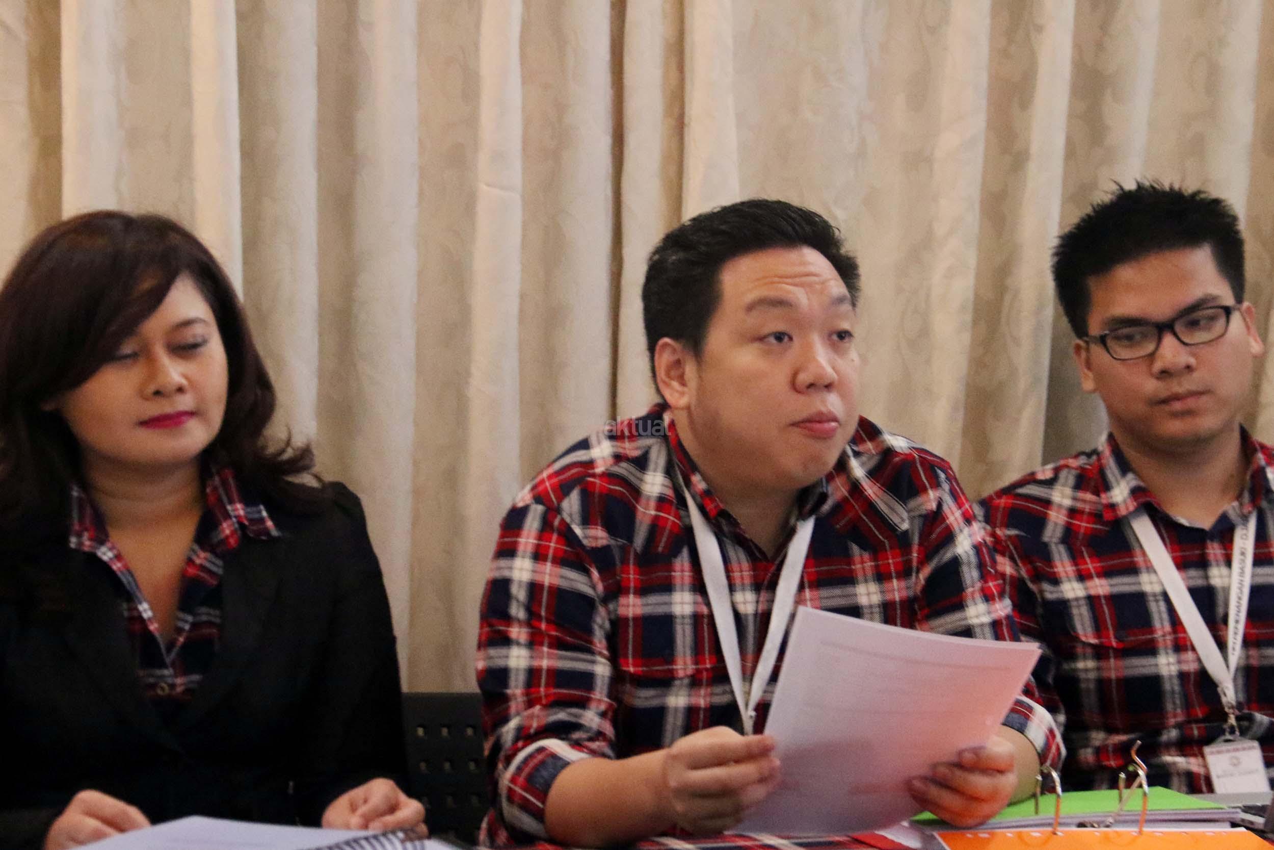 Bendahara Timses Cagub-Cawagub pasangan nomor urut 2, Basuki Tjahaja Purnama alias Ahok-Djarot Saiful Hidayat, Charles Honoris (tengah) menunjukkan laporan keuangan dana kampanye di Rumah Borobudur, Jakarta (12/2/2017). Dalam laporan tersebut pemasukan dana kampanye Ahok-Djarot mencapai Rp 60,1 milyar, sedangkan pengeluarannya tercatat Rp 53,6 miliar. AKTUAL/Munzir