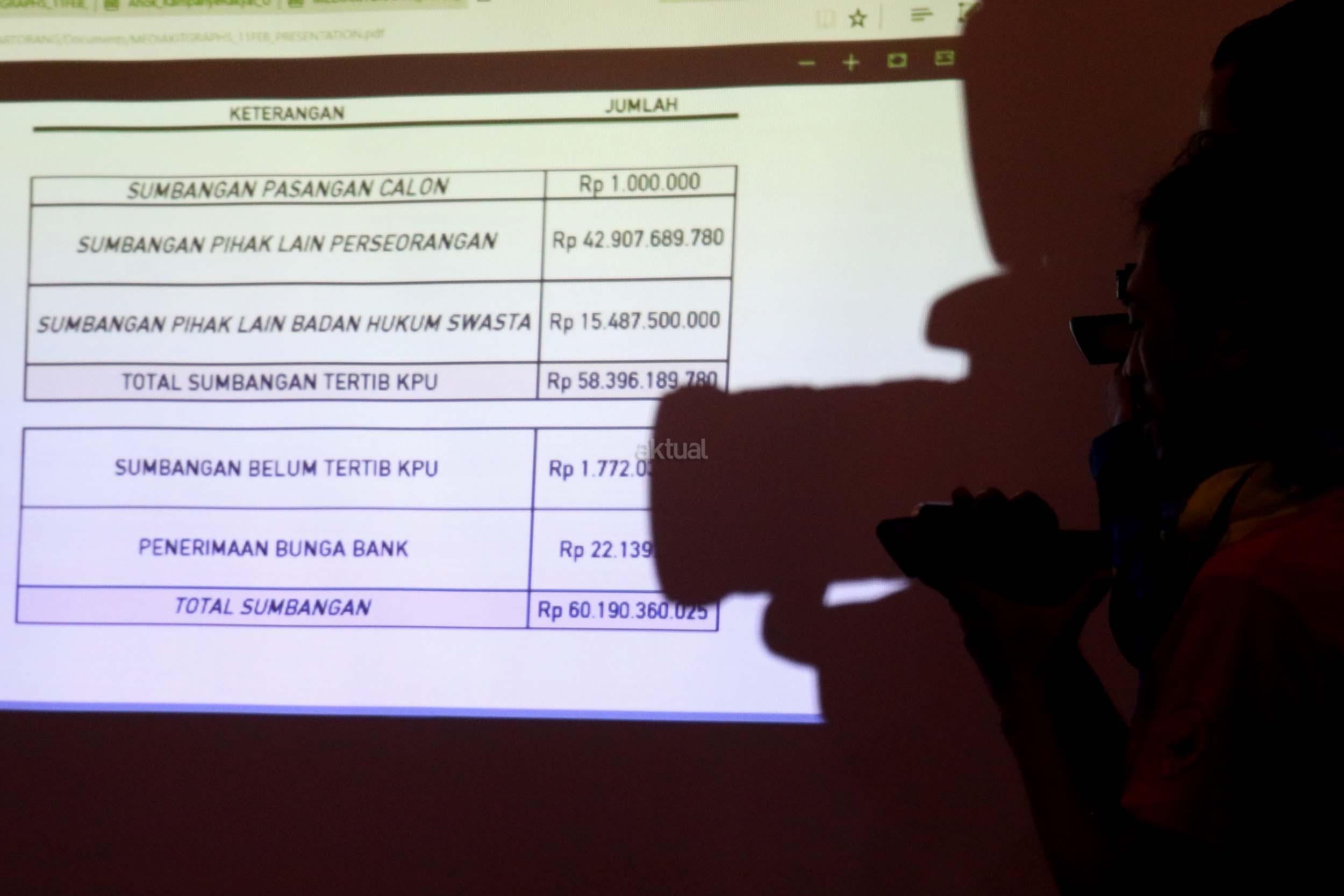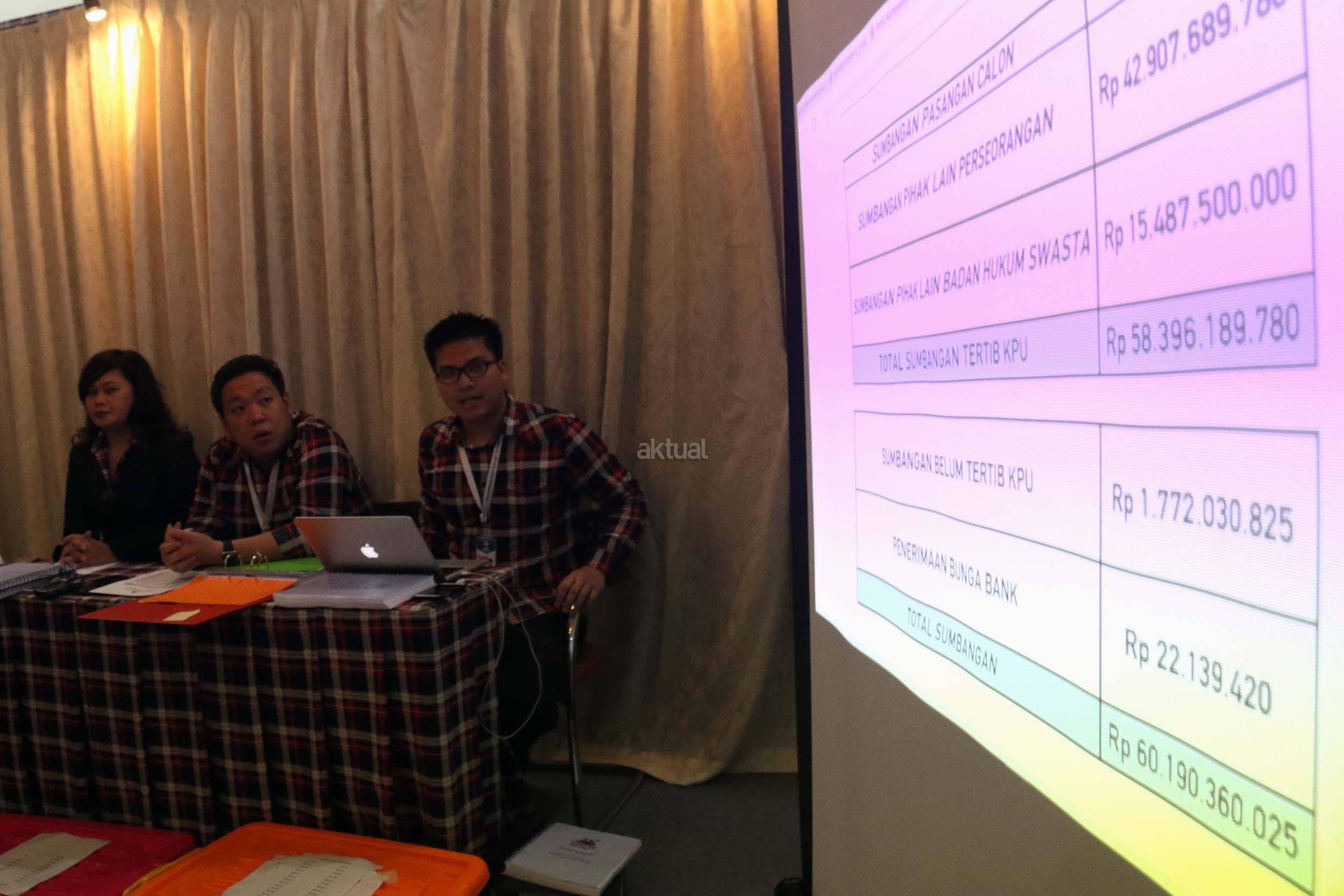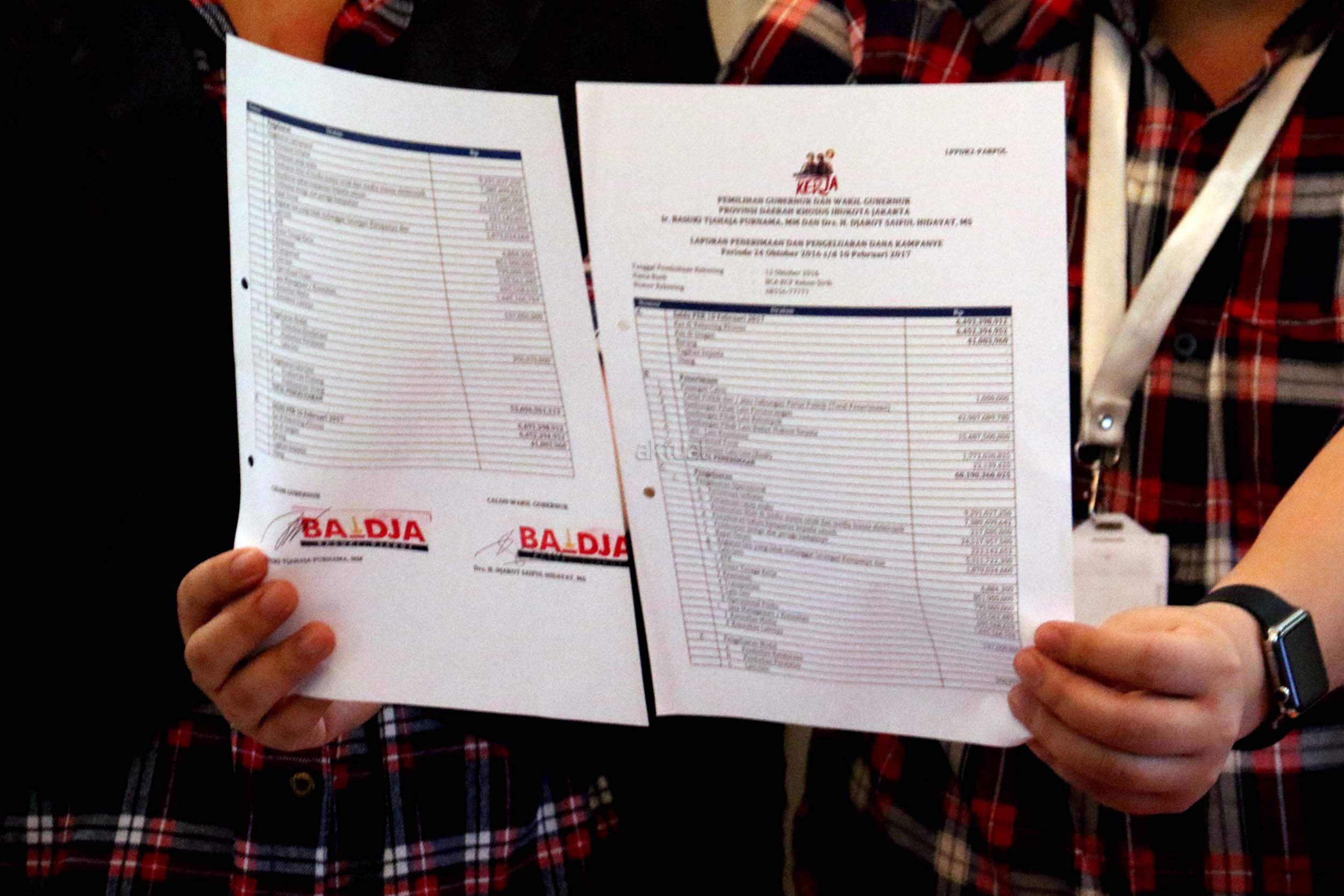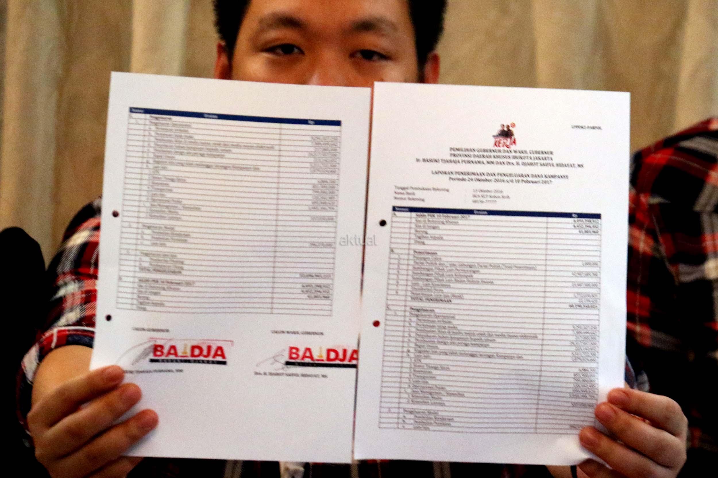 Dalam laporan tersebut pemasukan dana kampanye Ahok-Djarot mencapai Rp 60,1 milyar, sedangkan pengeluarannya tercatat Rp 53,6 miliar. AKTUAL/Munzir
