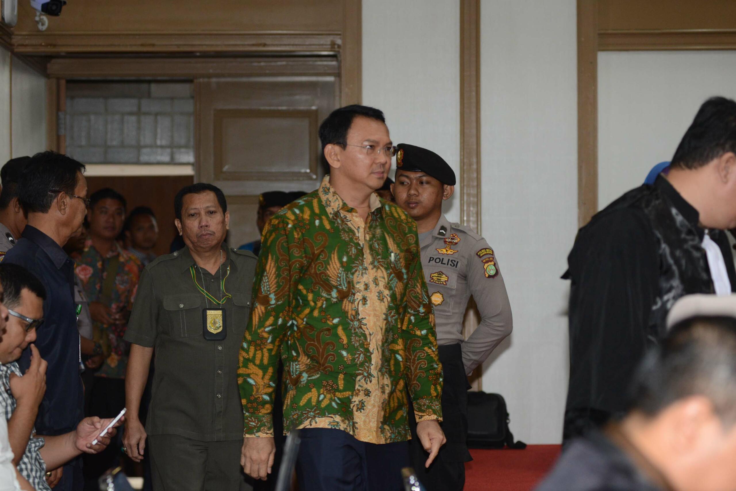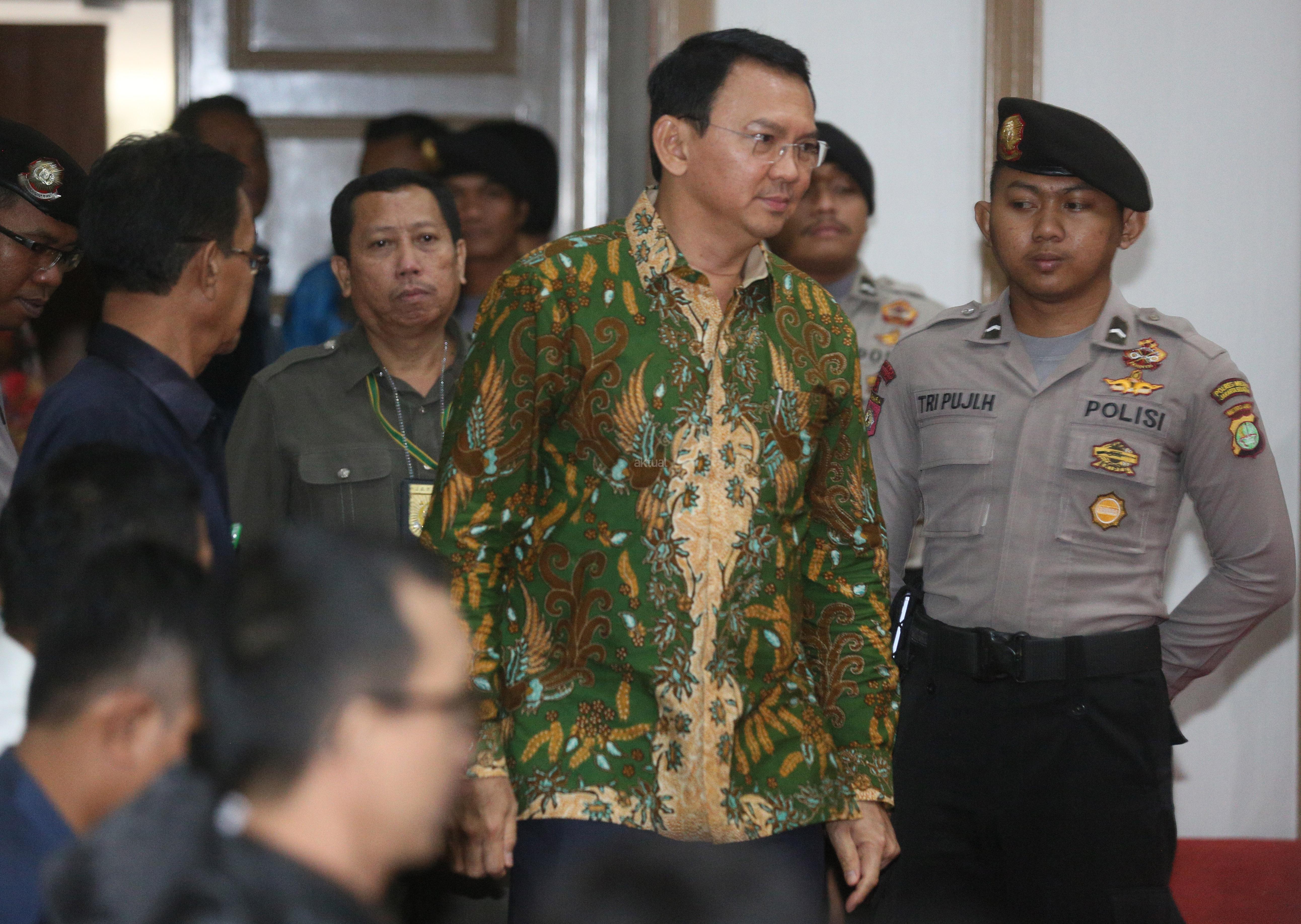 Terdakwa dugaan kasus penistaan agama, Gubernur DKI Jakarta Basuki Tjahaja Purnama (Ahok) memasuki ruang sidang