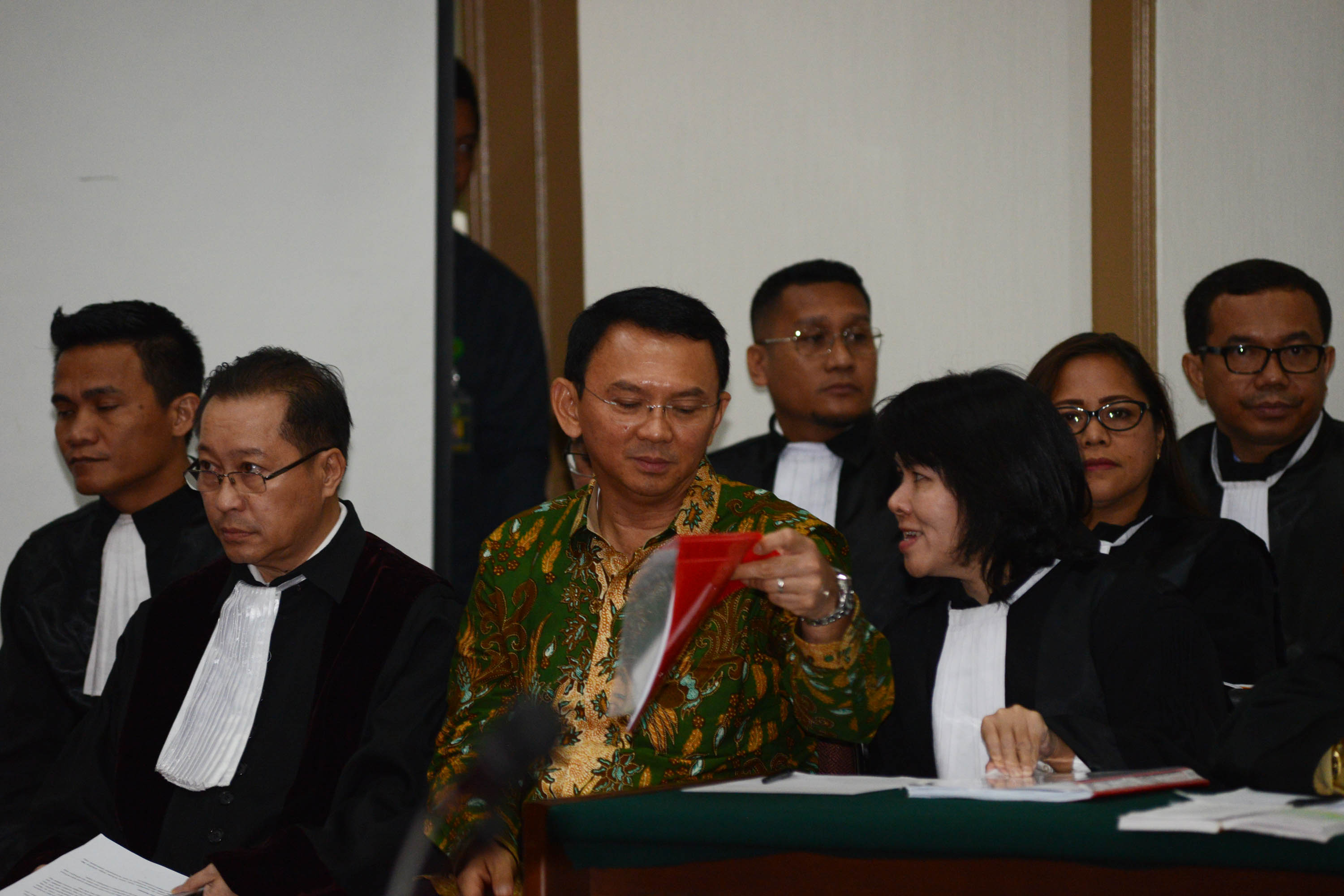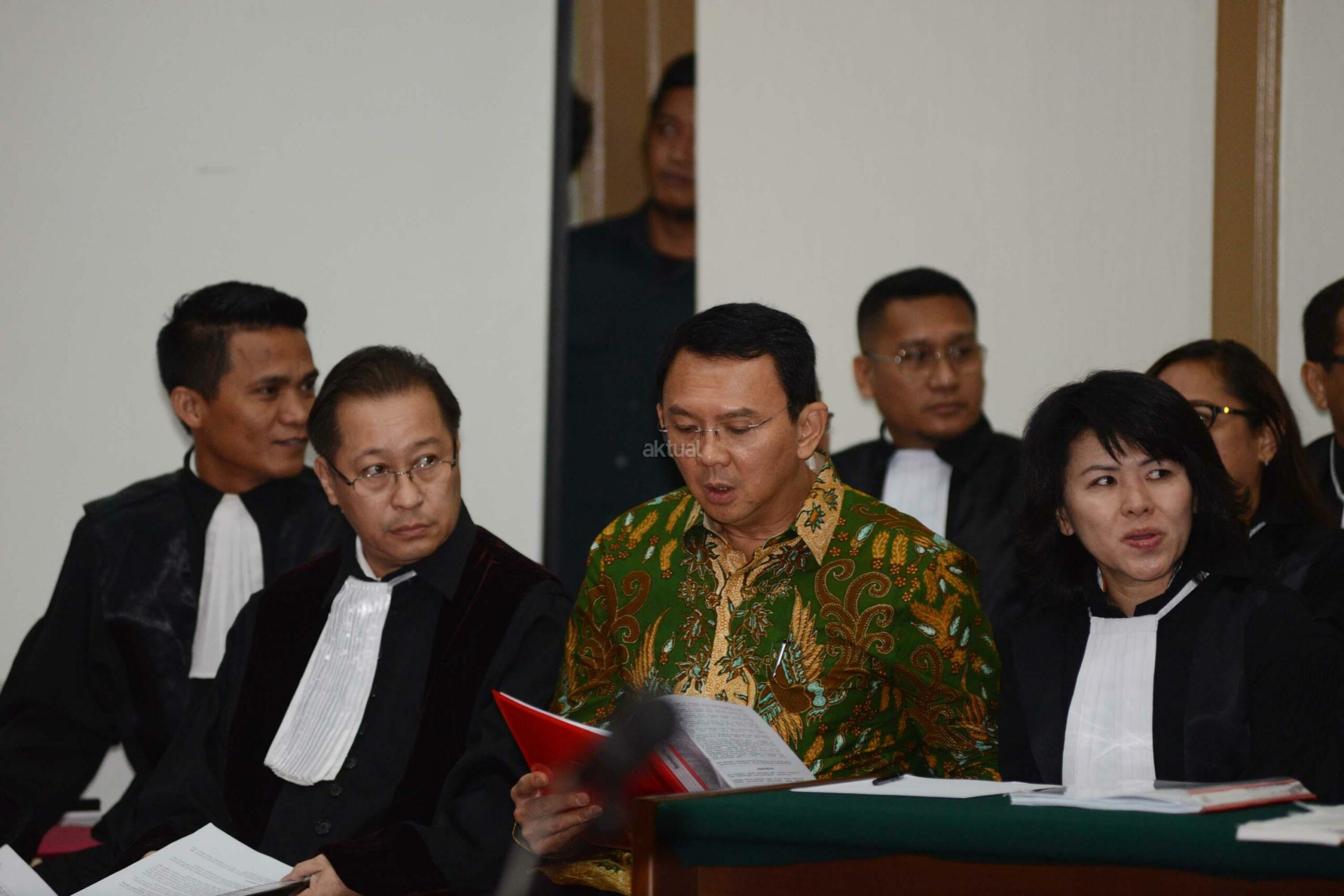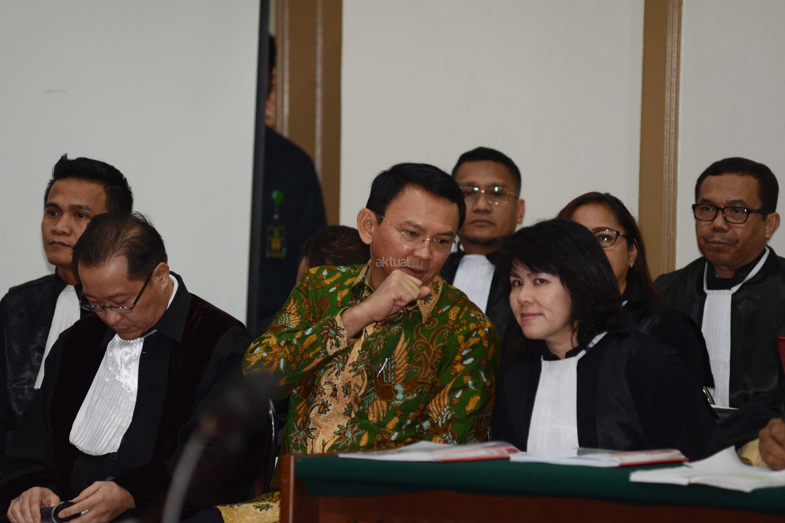 Terdakwa dugaan kasus penistaan agama, Gubernur DKI Jakarta Basuki Tjahaja Purnama (Ahok) didampingi kuasa hukumnya saat mengikuti sidang