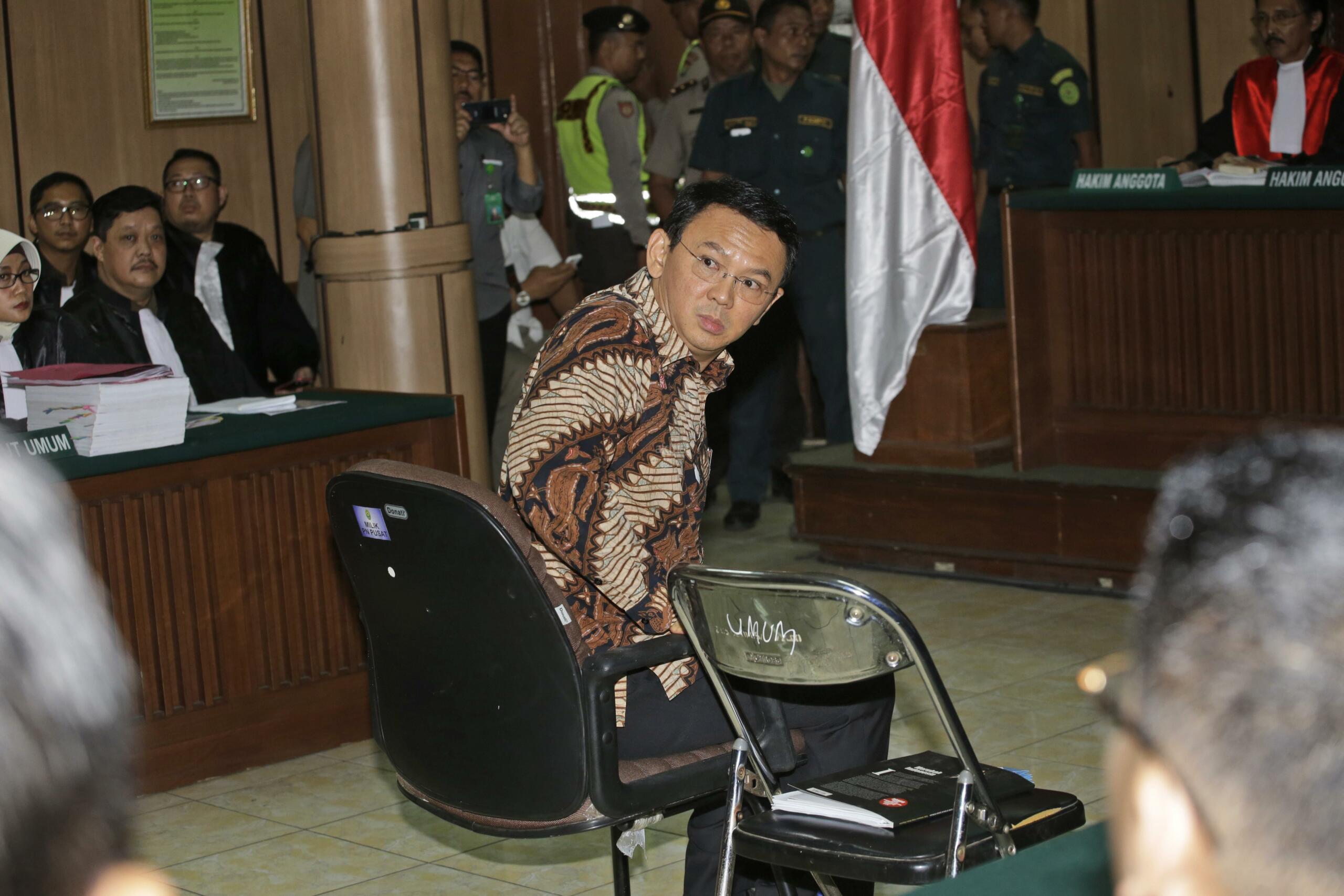 Gubernur nonaktif DKI Jakarta Basuki Tjahaja Purnama (Ahok) menjalani sidang perdana kasus dugaan penistaan agama oleh Pengadilan Negeri Jakarta Utara di gedung bekas PN Pusat, Jalan Gajah Mada, Jakarta Pusat, Selasa (13/12/2016). Sidang dilangsungkan atas pernyataan Ahok tentang surat Al Maidah ayat 51 saat kunjungan kerja di Kepulauan Seribu. AP Photo-Pool/Tatan Suflana