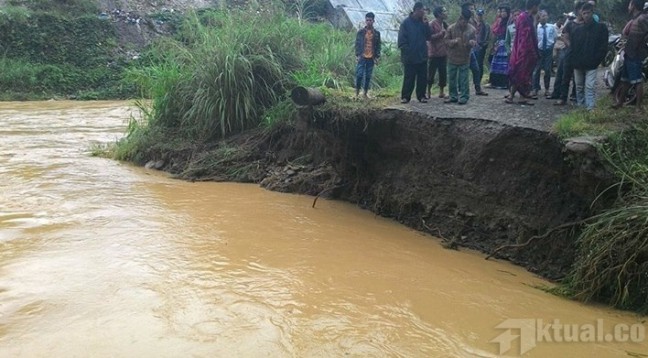 Jembatan darurat pun dibuat agar dua desa itu tidak terisolir. Diakuinya kondisi itu sangat mengancam keselamatan warga yang terpaksa harus melalui sungai untuk menyeberang. Hujan deras, ujar dia, juga menyebabkan 12 rumah terkena longsor. Sembilan rumah rusak berat, tiga rusak ringan. “Kerugian lainnya warga rusak sepeda motornya ketika longsor terjadi.”