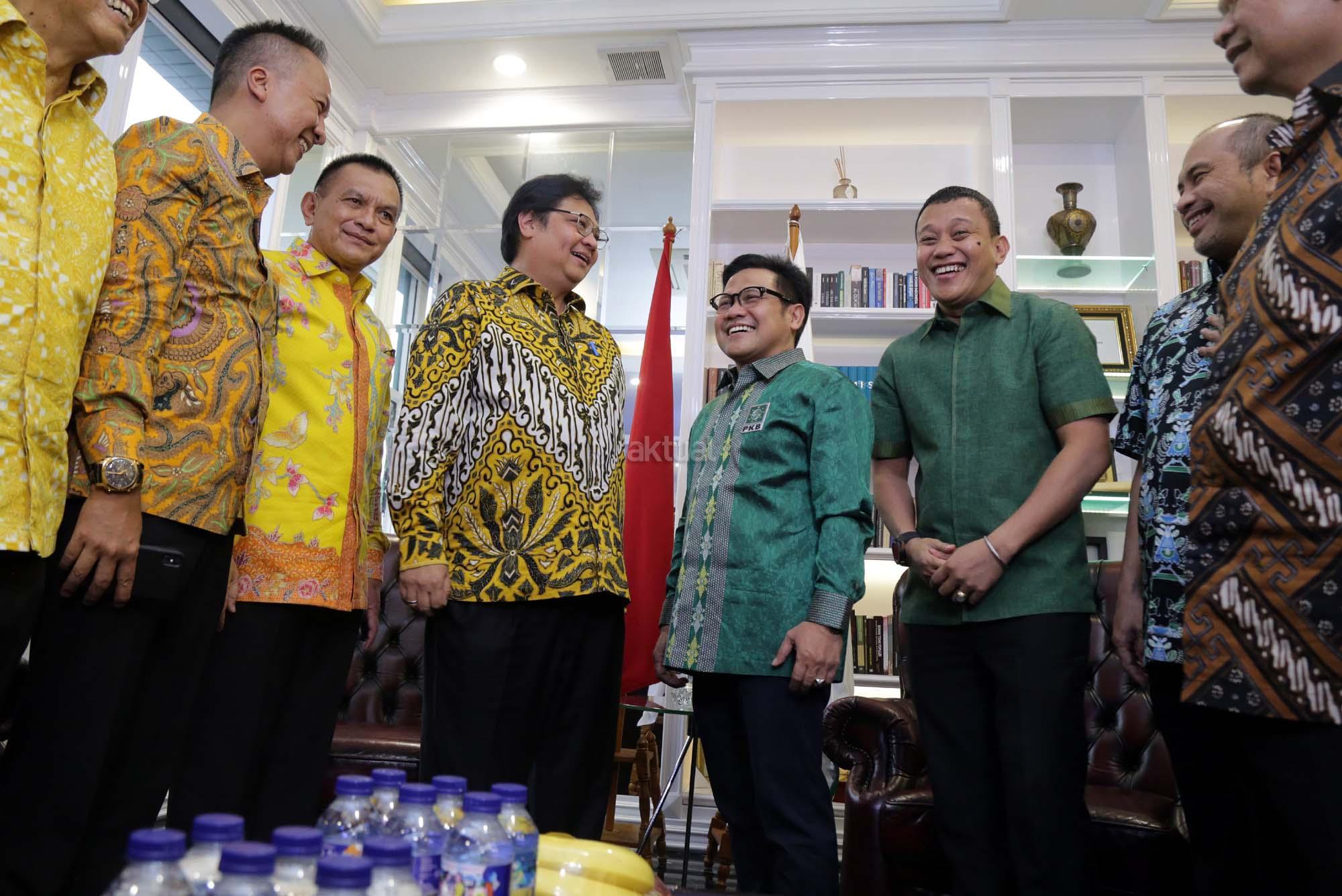 Ketua Umum Partai Golongan Karya (Golkar) Airlangga Hartarto didampingi jajarannya menemui Ketua Umum PKB Muhaimin Iskandar (Cak Imin) saat silaturahmi ke kantor DPP Partai Kebangkitan Bangsa (PKB), Jakarta, Rabu (4/7/2018). Pertemuan tersebut membahas koalisi partai pendukung Jokowi di pilpres 2019. AKTUAL/Tino